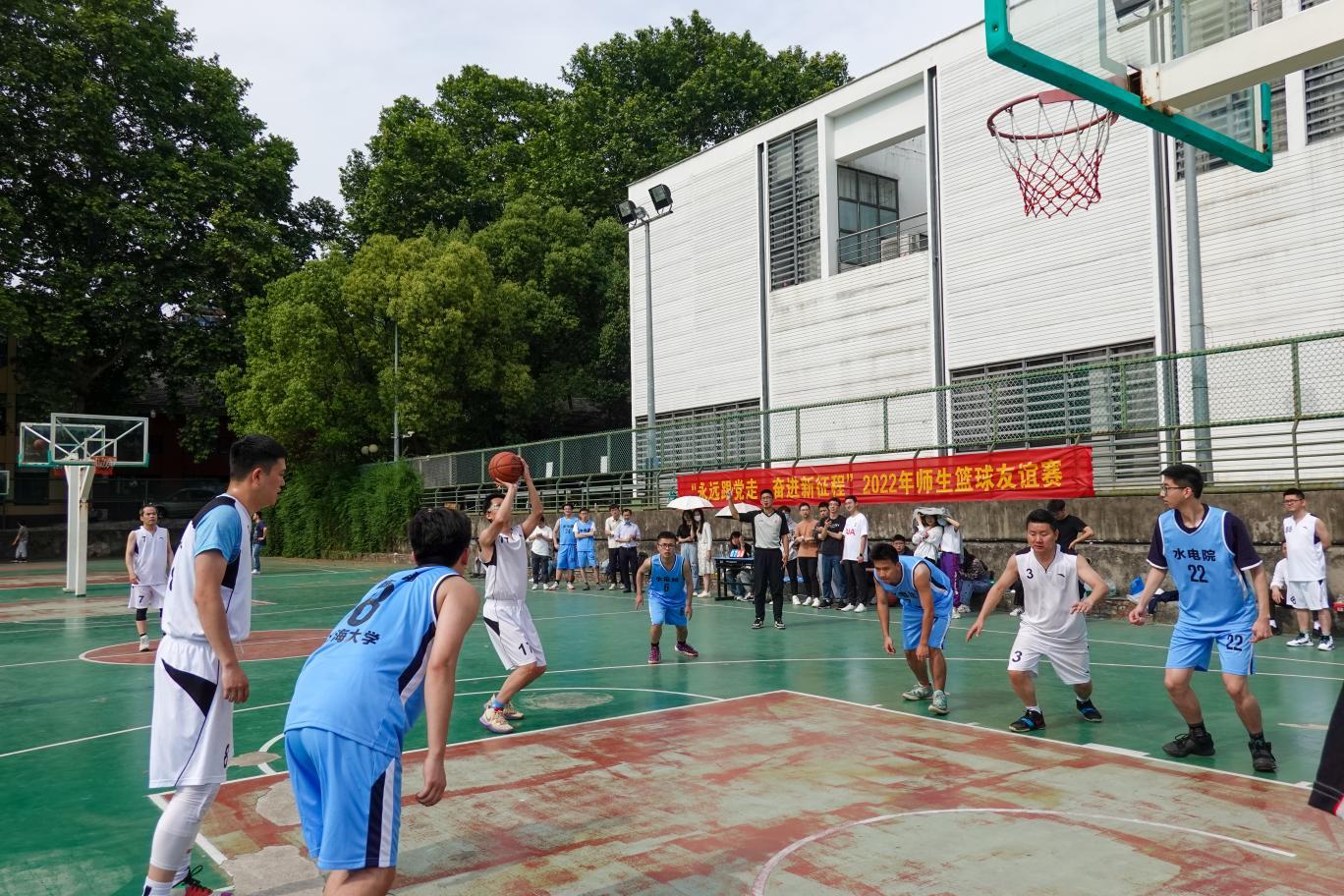 为更好发挥共建载体作用、增进师生交流互动,5月14日,水电院第一本科生党支部与共建教师支部——开云电竞网校办党支部,联合开展“永远跟党走,奋进新征程”师生篮球友谊赛。比赛在开云电竞网西康路校区篮球场举行。