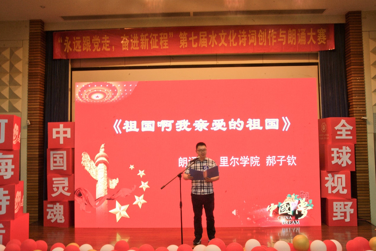 穿越中华民族悠久灿烂的历史文化长廊,诗词寄托着我们对党对水利事业的无限热爱。今天我们高唱凯歌走向复兴,“永远跟党走”步伐流畅;今天我们手挽着手奔向富裕,“永远跟党走”誓言响亮。水文化诗词创作及朗诵大赛作为我院文化传承的传统活动之一,自举办就深受师生喜爱,在为来自全校不同学院的学生提供交流的平台,鼓励河海水之子们展现诗词风韵与风骨的同时,也推进了“水文化”精神的传承,培养学生综合素质与时代精神契合,弘扬新时代水利人的精神品质。在所有选手及老师的共同努力下,本次“永远跟党走,奋斗新征程” 第七届水文化诗词创作与朗诵大赛圆满结束。(文/袁晨禹;图/李茜、朱弘霖、罗毅、陈泽博、廖培钧)