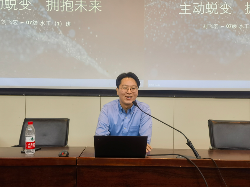 徐海峰学长指出,大学生活需要做到三个关键词:一是要“主动融入”,围绕求学、历练、交友三个维度来介绍如何融入大学,全方位开启专属的大学生涯。二是要“找准定位”,确立目标,理清思路,利用逆向思维作好长期和短期职业生涯规划,引导自身学习和实践活动。三是要“迎接未来”,以自身工作视域为同学们展望了水工和智慧水利专业的未来发展方向,基于水利专业谈转型和融合发展。他表示,大家既要顺应专业转型的大趋势,也强调了立足于本专业的重要性,让大家做“水利+”的专业复合型人才。