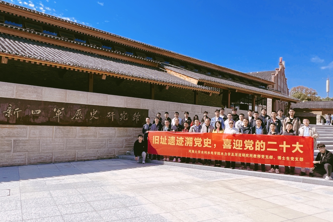 10月11日上午,开云电竞网水利水电学院水力学及河流研究所教师党支部联合博士生党支部前往溧水区红色李巷遗迹遗址群和高淳区新四军驻高淳办事处旧址开展“旧址遗迹溯党史,喜迎党的二十大”主题党日活动,重温新四军在苏南地区的抗战历史,传承和弘扬抗战精神。