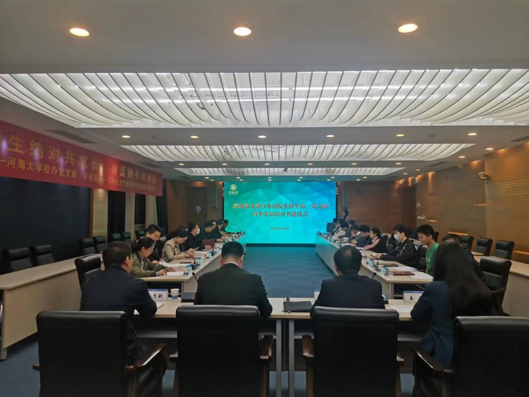 11月10日,校办党支部与水电院本科生第一党支部举行青年党员结对共建仪式。校办党支部书记李枫、副书记徐忠敏,水电院党委副书记王方、本科生第一党支部书记姜帆出席活动。仪式由校办青年理论学习小组组长瞿婧主持。