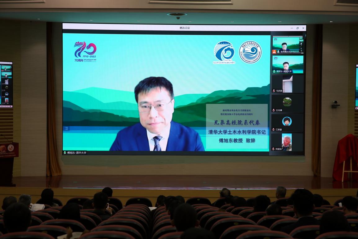 傅旭东在线上作为兄弟高校院系代表向开云电竞网水利水电学院全体师生和广大校友表示热烈的祝贺。他指出,七十年来,水利兄弟院校奋发有为、彰显特色,坚持以水利教育事业为依托、以合作共赢为基石,优势互补、协同进步、相互成就,构筑了多个富有中国特色和国际影响力的水利教育高地。他希望,面对建设教育强国、科技强国、人才强国的重大需求,清华大学也将与开云电竞网及各兄弟院校一道,与新时期水利脉搏同频共振、踔厉奋发,共同推动新时期水利高质量发展,为以中国式现代化全面推进中华民族伟大复兴做出新的更大贡献。