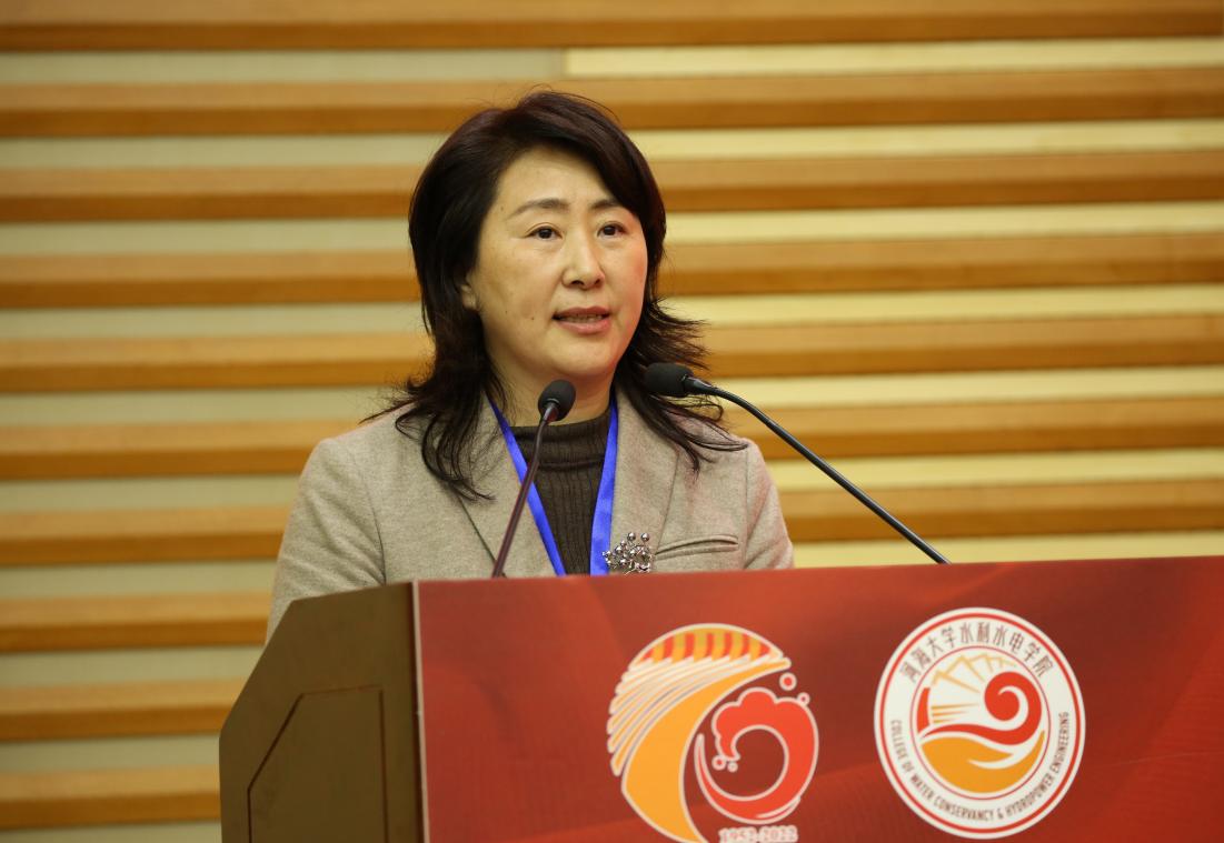 王媛代表水利水电学院向各位领导、来宾、校友的到来表示衷心的感谢和热烈的欢迎。她从发展历程、人才培养、学科建设、师资队伍、科研创新等方面汇报了学院的情况。她表示,学院将坚持立德树人根本任务,以一流党建铸魂育人,开拓新境界、取得新突破,以一流学科建设推进办学实力,实现新提升、创造新高度,以一流人才培养和一流科技成果,彰显新气象、展现新作为。在长江大保护、黄河流域高质量发展、“京津冀协同发展”“河长制”等国家重大涉水战略中积极作为、主动奉献,为新时代水利高质量发展提供强有力技术支撑和人才支持,为实现中华民族伟大复兴中国梦贡献河海水电力量。