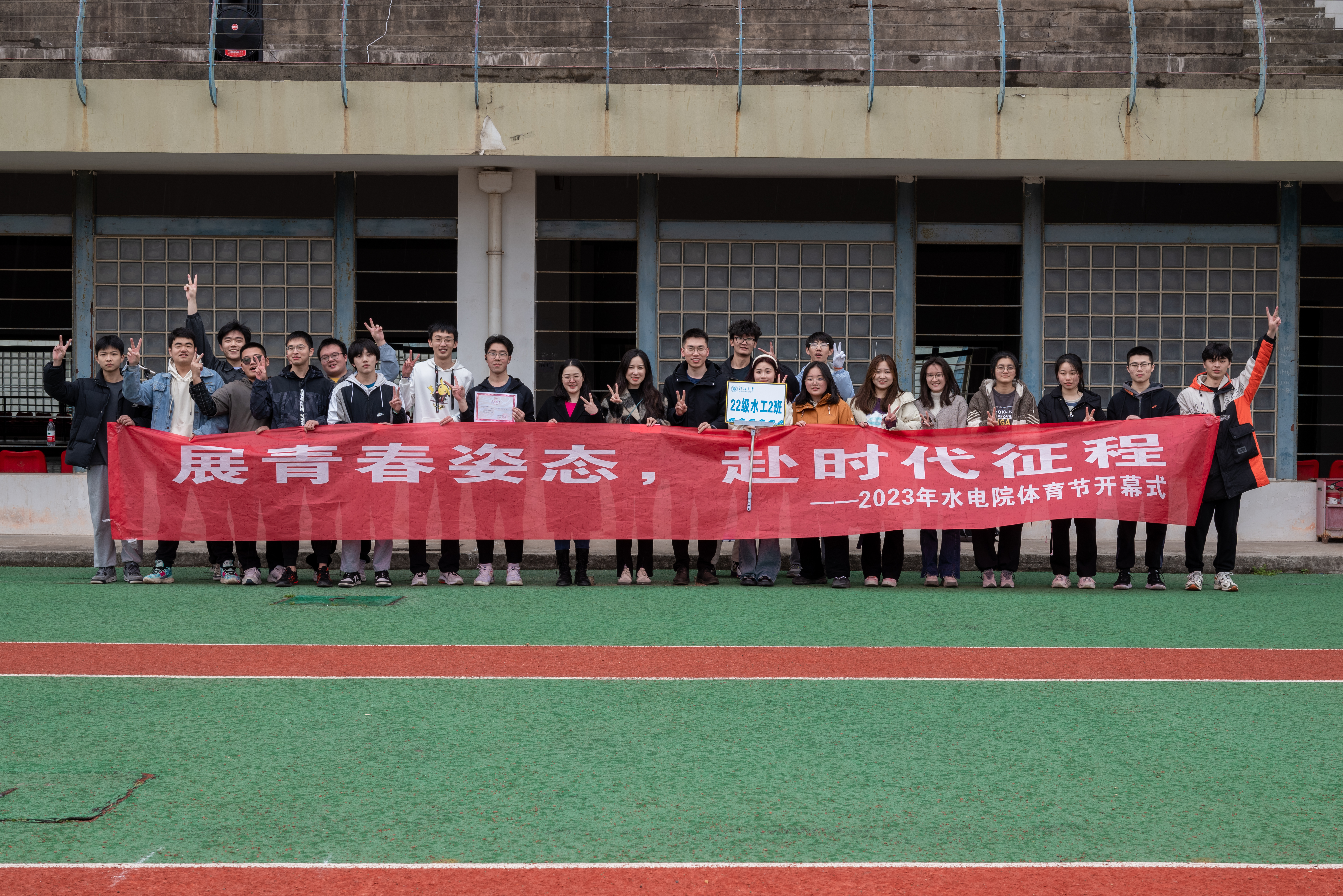 伴随着热烈的掌声,体育节第一个项目——“凝心聚力,绳采飞扬”春季拔河比赛正式开始,2021级、2022级共计14个班级组成参赛队伍参加比赛。经过各支队伍的奋勇拼搏和激烈的竞争,在多场“拉锯式”较量后,2022级水工2班和2022级水工3班突出重围,进入决赛,争夺比赛的冠军。最终2022级水工2班获得春季拔河比赛冠军,2022级水工3班获得亚军,2021级水工1班获得季军。