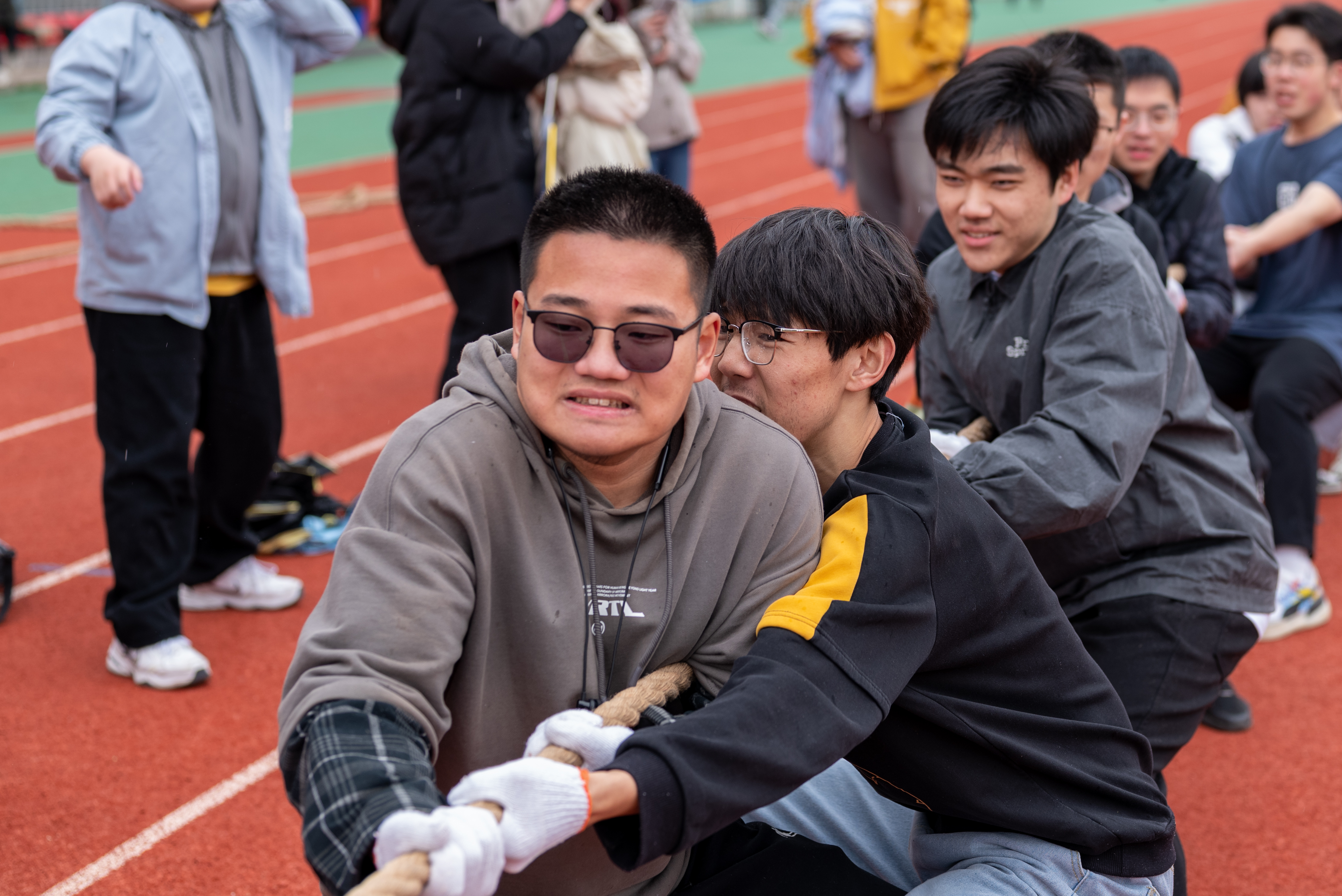 在本次拔河比赛中,我院学生积极参与、团结协作,展现出了强大的凝聚力和良好的精神风貌。此次体育节中,我院将开展拔河、乒乓球比赛、羽毛球比赛、篮球赛、趣味运动会共五项运动项目,为在校师生提供多样的竞技比赛,让运动挥洒汗水,让青春在竞技中焕发光芒。(文/齐鹏玉、武宇辉,图/朱鸿霖、丁静祎、赖宇杰)