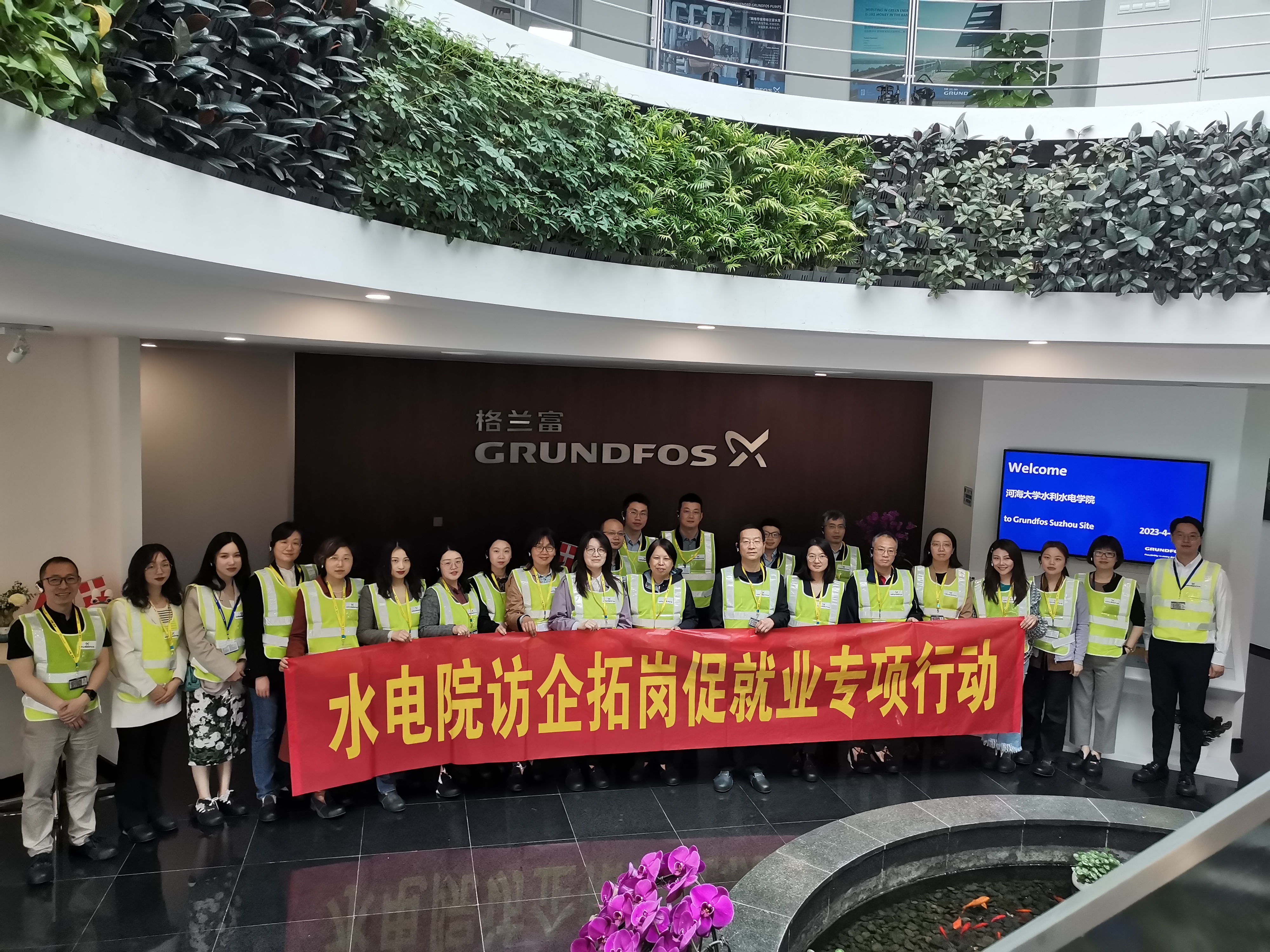 4月14日,学院党委书记娄健、党委副书记戴媛媛带队,学院研究生导师代表方国华、周建旭、傅宗甫、周兰庭、任杰和学院二级机构相关负责人甘磊、陈胜、闫静、初文婷以及两办行政人员、辅导员赴格兰富水泵(上海)有限公司开展访企拓岗交流座谈活动。公司市政水务事业部防洪业务销售总监王海全、市政水务事业部市场部负责人徐菁、数字水务业务发展经理刘飞宏等相关部门负责人出席座谈。