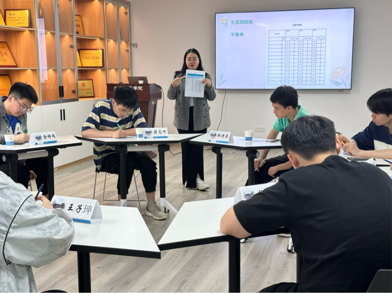 在“生涯行动派”环节,笪老师让大家填写了大学生涯目标行动计划书,激励大家完成自己的生涯目标,引导学生畅想未来,并分享了此次活动的收获与感想。通过这一次团辅,同学们对自己的决策风格有了明确的认识,掌握了“生涯平衡单”等决策工具的使用,缓解了对于决策的焦虑,有效的帮助学生在生涯决策路口赋能。