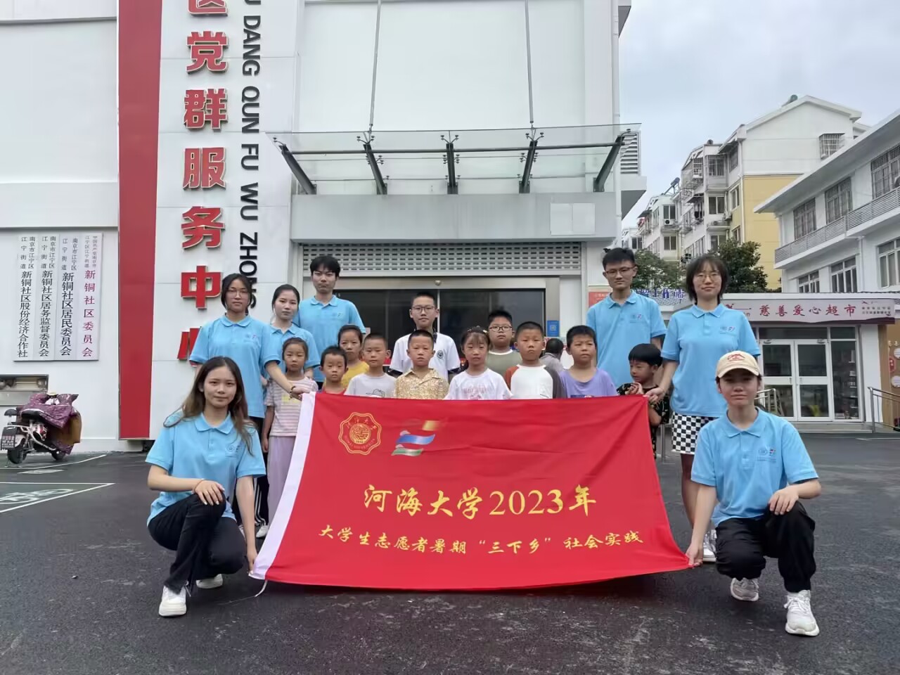 (实践团成员与社区儿童合影)