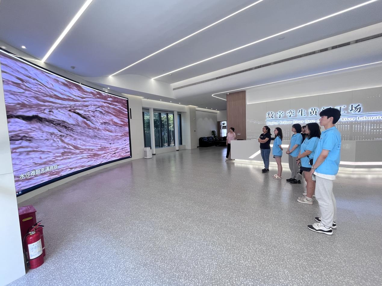 实践首日,同学们在黄河水利科学研究院张主任的带领下,学习了有关数字孪生部分的智慧水利建设知识科普。在专业人士的指导下,实践团队的同学们了解到了有关黄河的三种形式和智汇黄河的理论知识与其具体实践。作为全国水利系统非盈利性重点科研单位,黄河水利科学研究院目前着重于数字黄河的数字孪生技术研发。在百名博士团队的带领下紧紧围绕习总书记“治理黄河,重在保护,要在治理”的理念,利用多种技术建立数字化模型,筹备多种预案方案,紧盯防汛监控。在学习过黄河流域治理的理论知识过后,张主任带领实践团队的同学们实地参观了模型黄河。在参观的过程中,同学们通过参观模型黄河,看到了波澜壮阔的黄河流域和在黄河不断冲刷下所形成的黄河两岸特有的宽滩区现象,并了解到在此特有地理条件下所建立出来的村台居住区。