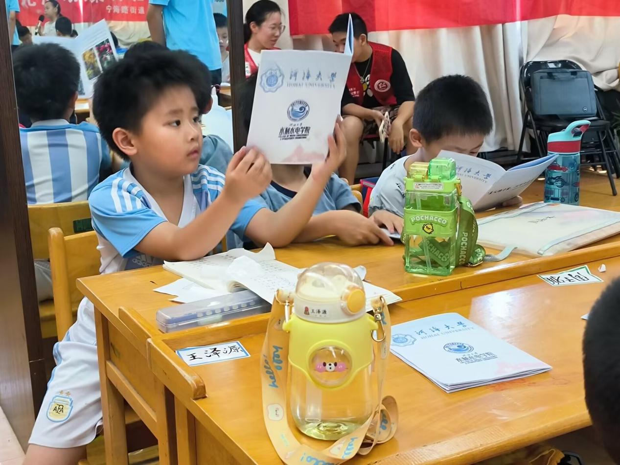 近日,水利水电学院“星火燎千里,江河泽众生”井冈山精神志愿实践宣讲团前往鼓楼区宁海路街道为民服务中心,开展暑假社会实践志愿宣讲活动。此次活动通过宣讲井冈山精神的形式向街道的小朋友们弘扬革命精神,并以小游戏的方式,帮助小朋友更好地了解井冈山时期的革命历程,培养爱国爱党的意识。