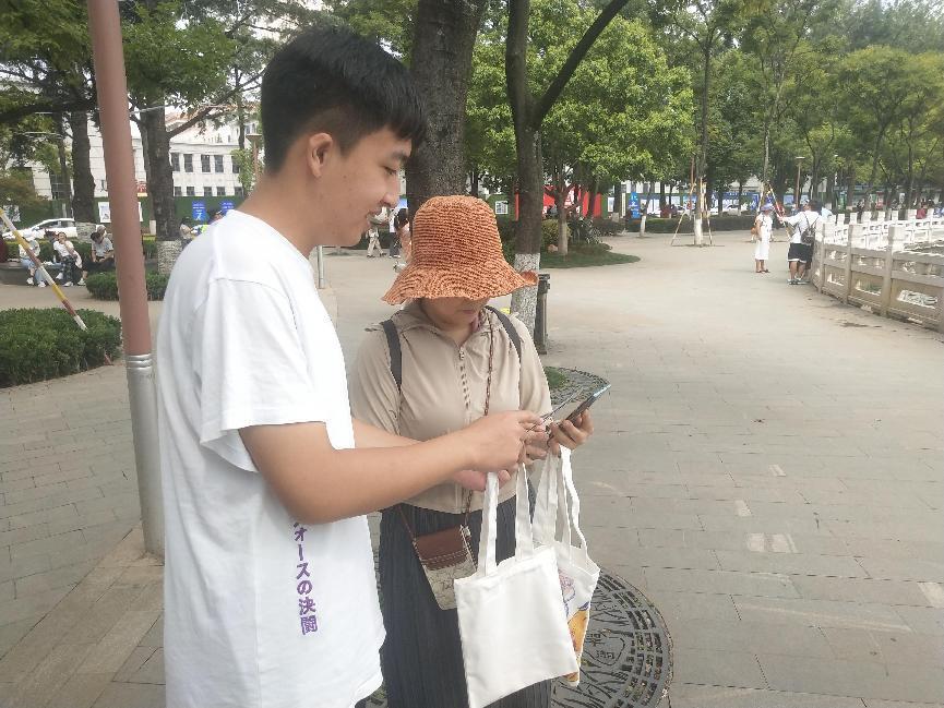 实践团向路人宣传讲解唐卡文化