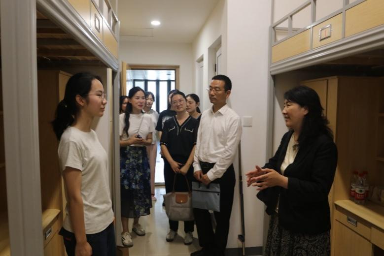 学院领导班子在走访学生宿舍后,继续调研金坛校区办公室、会议室等院系工作场所,为日后顺利开展科研、教学、行政工作打下基础。