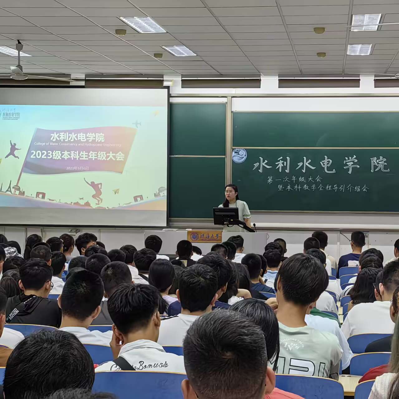 9月6日,我院2023级本科新生第一次年级大会暨本科教学全程导引介绍会在致用楼如期举行。教学秘书史静老师、2023级辅导员帅雨婷老师、全体2023级本科新生参加会议。大会由帅雨婷老师主持。