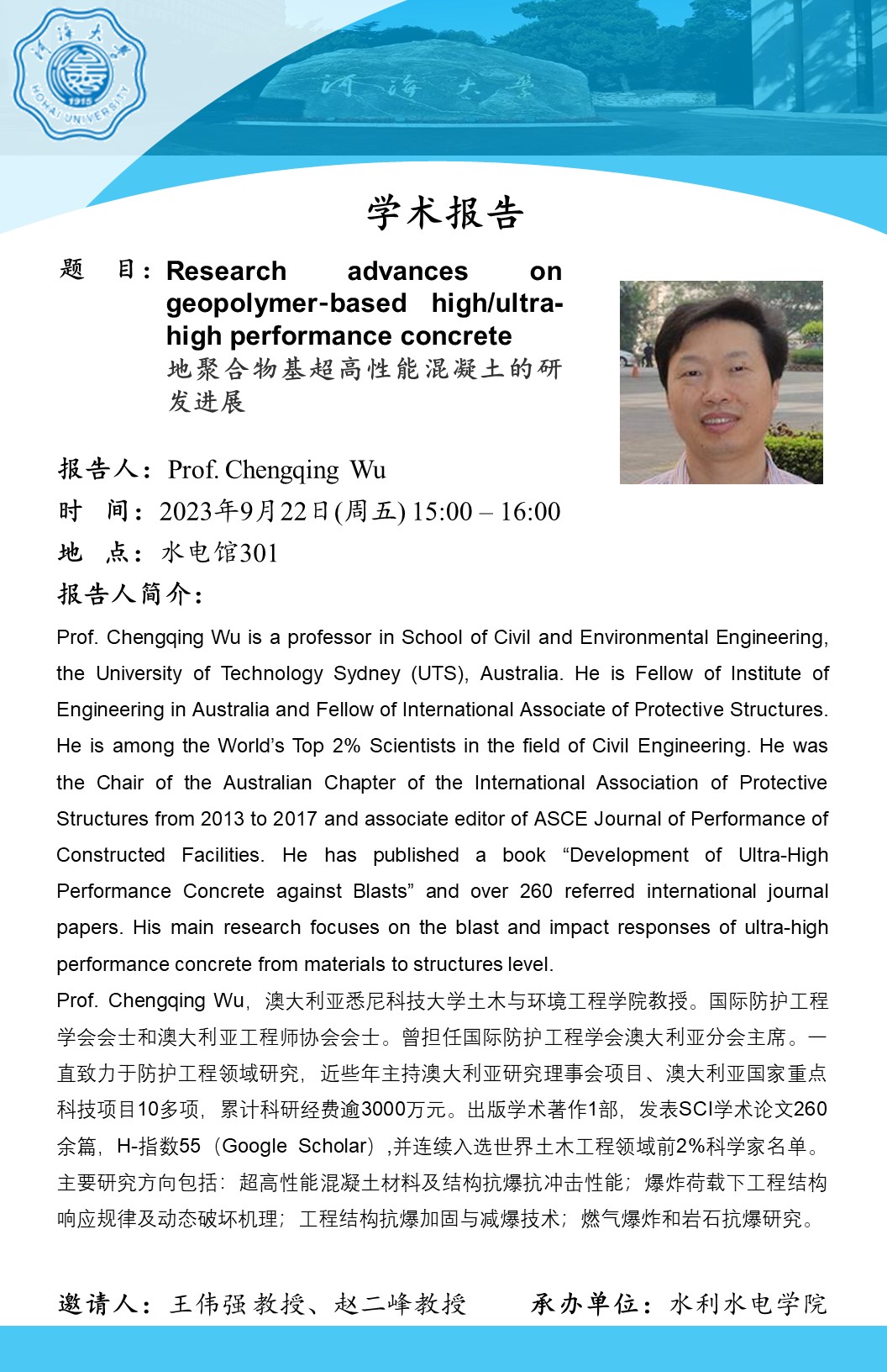 邀请人:王伟强 教授、赵二峰教授 承办单位:水利水电学院