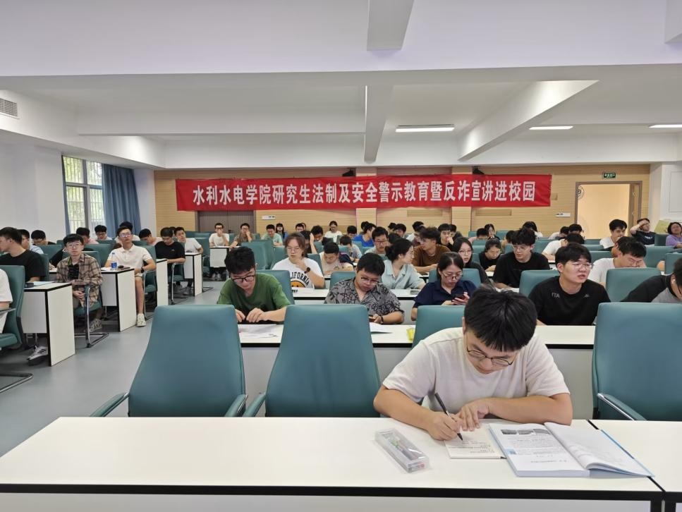 9月19日,根据学校《关于做好2023级研究生入学教育的通知》文件要求,同时为进一步提高大学生安全防范意识,建设平安校园,我院邀请江宁开发区派出所娄军来警官,面向水利水电学院面向水利水电学院2022级及以上部分研究生,举办2023年法制安全暨反诈宣传讲座。