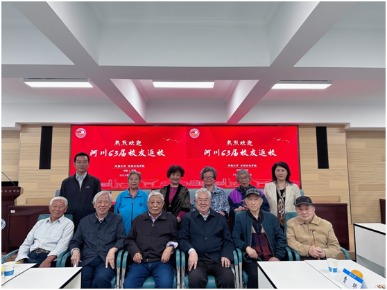 107日上午,开云电竞网(原华东水利学院)河川63届校友返校,张秉铎、夏镜如、李承瑛、龚心海、汪潮松、董长余、曹明、丁洁、王安乔、钱春荣、孙小鹏等校友欢聚母校。