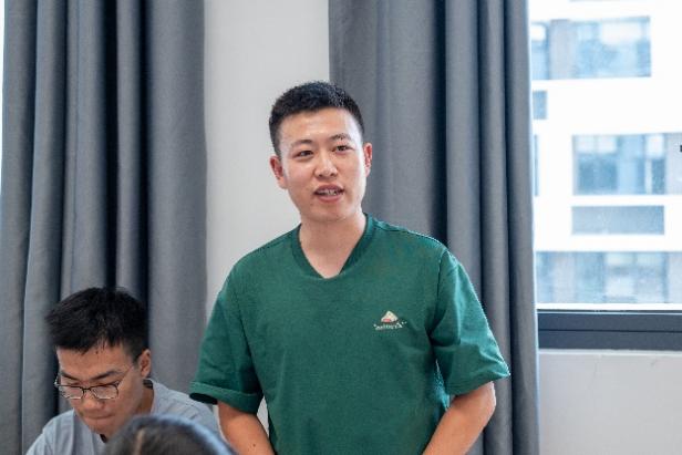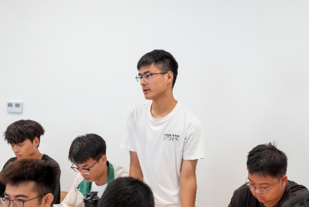2023级硕士五班党支部书记武海彬作为硕士生学生骨干代表发言。他提到,在新校区、新环境、新形势下,硕士生与本科生应当进一步加强交流合作,以党员带动、组织带动、群体带动“三个带动”,本硕协同推进党团一体化发展。