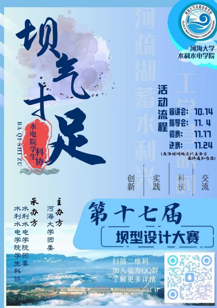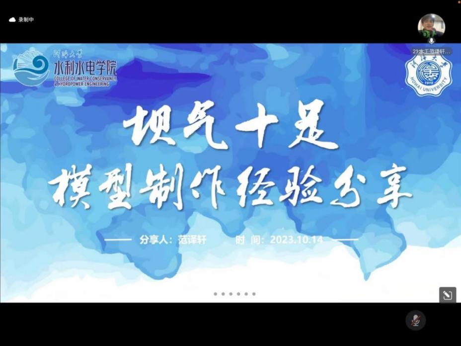 近日,我院举办第十七届“坝气十足”坝型设计大赛线上宣讲会,会议邀请往届获奖团队成员做经验分享,全校各参赛团队、院科协全体成员参加宣讲,各参赛队伍代表参加。