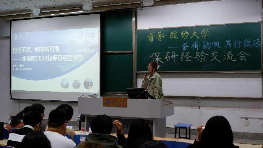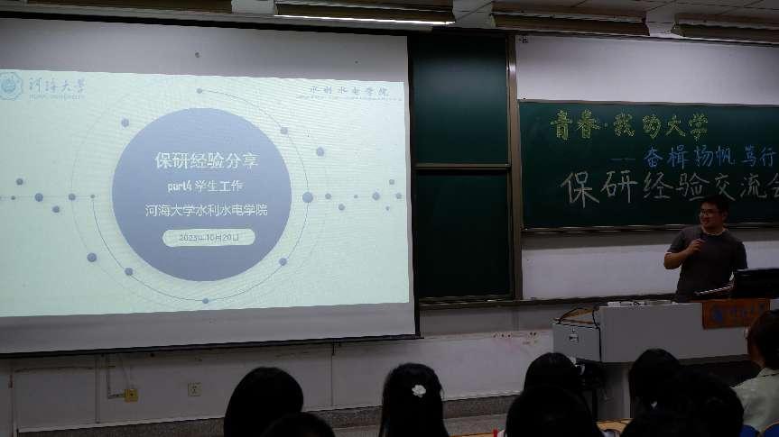 近日,我院开展“青春·我的大学”保研经验交流会,邀请2020级水利水电工程专业本科生张亚楠、王姝文、张耀东、周峙仲四位学长学姐做保研经验交流分享。2023级辅导员帅雨婷、2023级全体新生参加。