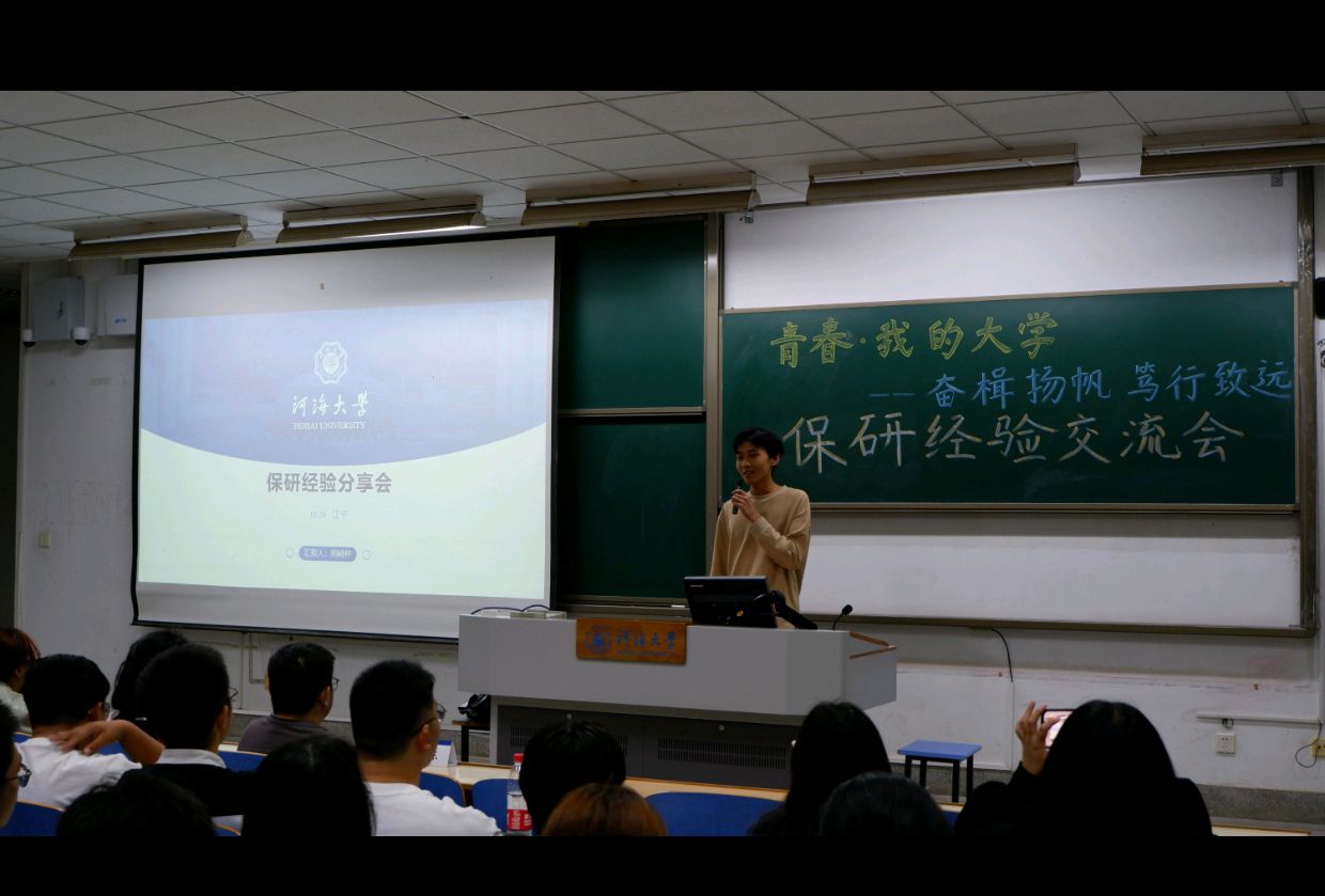在分享会中,王姝文用“多听、多问、多做、多尝试”四个多为主题,向学弟学妹们介绍了加强专业学习的重要性,分享了宝贵的学习经验,重点强调要在课堂上提高听课效率,养成课前预习和课后复习的好习惯,夯实学习成绩,为保研打下坚实基础。