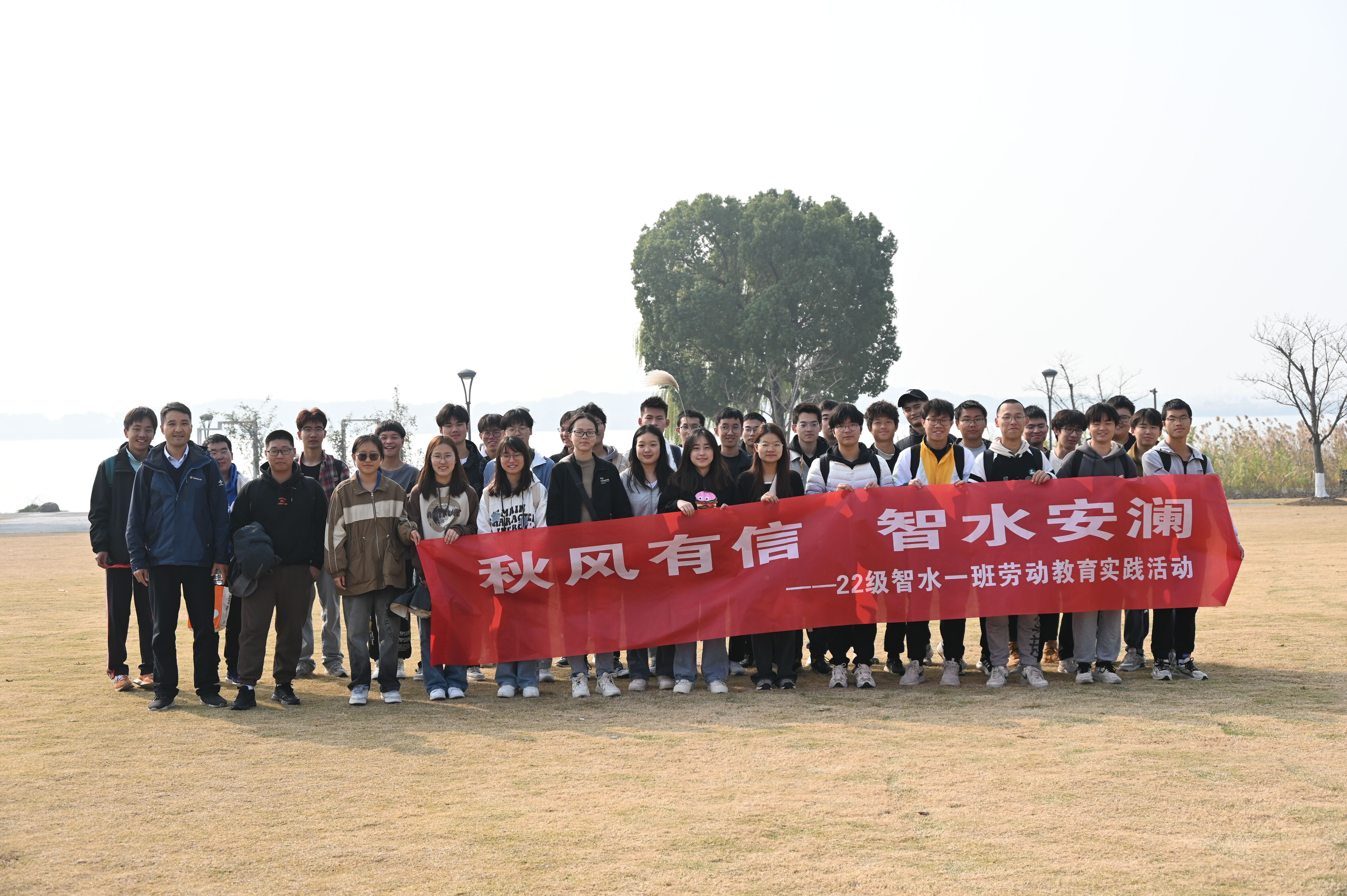 11月23日,我院智慧水利专业在常州金坛钱资湖开展“秋风有信,智水安澜”劳动教育实践活动。活动由学院劳动教育课程负责人詹泸成老师组织带领,2022级智水一班全体同学参加了本次活动。