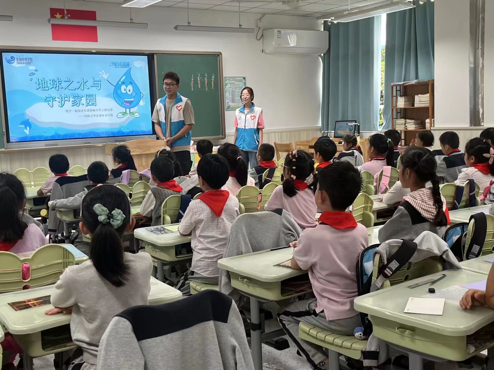 “节水优先,空间均衡,系统治理,两手发力”是新时代治水方针,为加强节水爱水护水宣传,引导小学生提高节水意识,养成节水爱水护水的良好习惯。开云电竞网水利水电学院“河宁一起知水行——水利治理及水文化宣传”项目志愿者们走进力学小学和银城小学,开展“地球之水与守护家园”水文化主题宣讲活动。