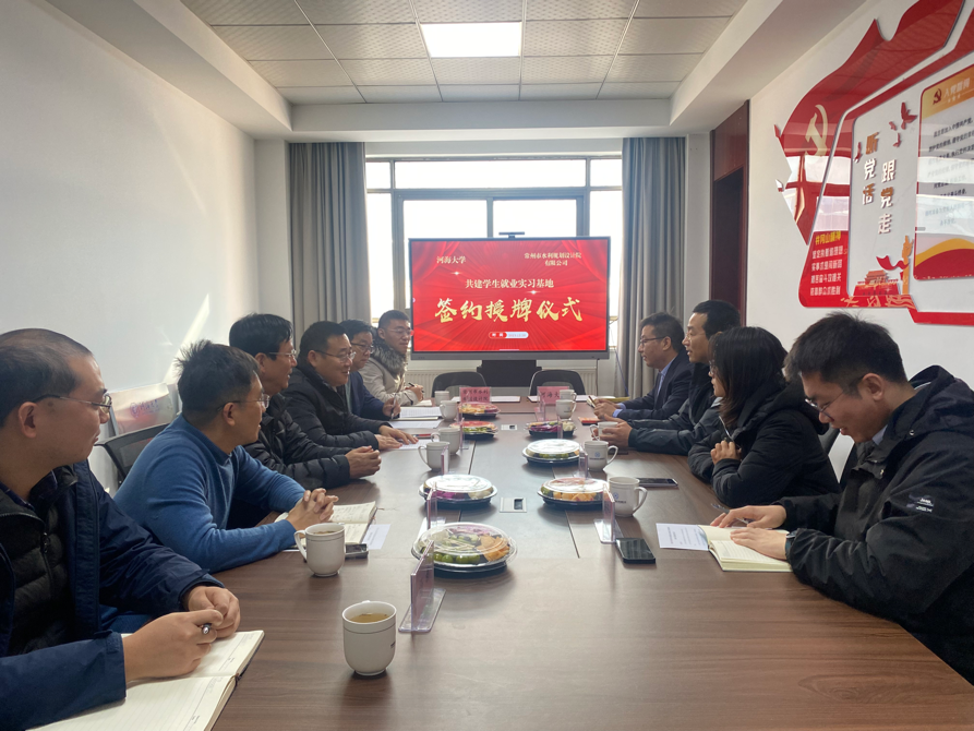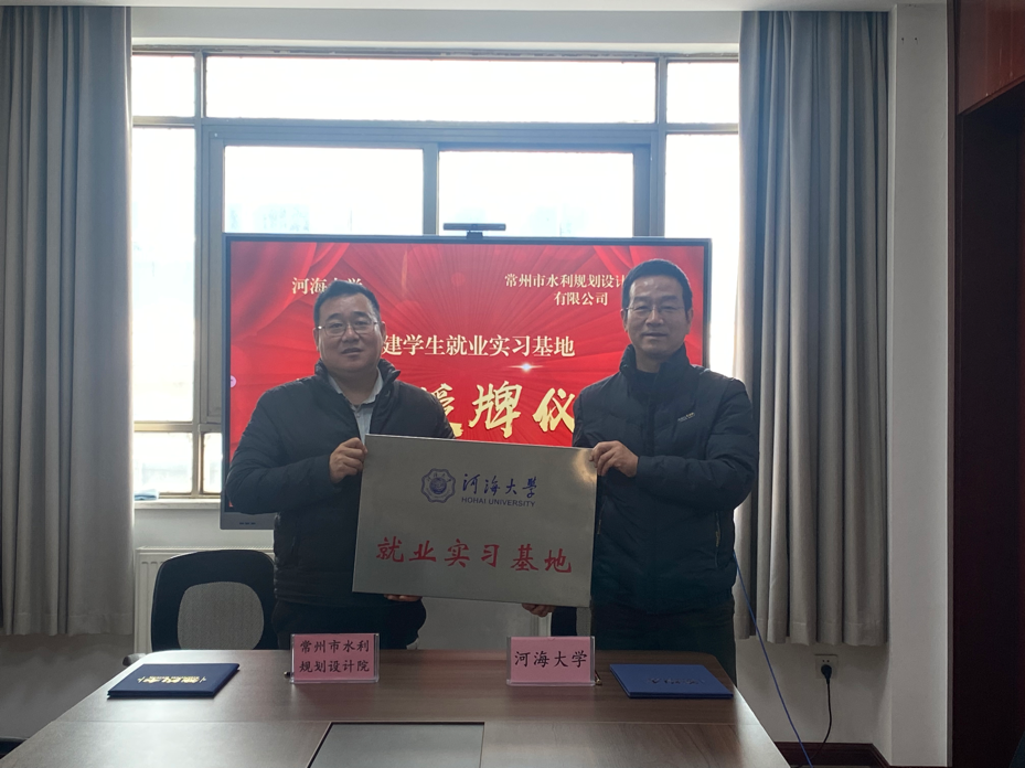 12月28日,我院与常州水利规划设计院举行院企合作签约暨“就业实习基地”揭牌仪式。常州水利规划设计院有限公司执行董事孙峰,技术顾问滕田根,咨询室主任王强,经营部主任刘林,副总工程师柏军,设计一室主任杨新,学校产业技术研究院副院长刘建峰,学院党委书记娄健,学院党委副书记戴媛媛,辅导员侯开智、陈辰参加仪式。