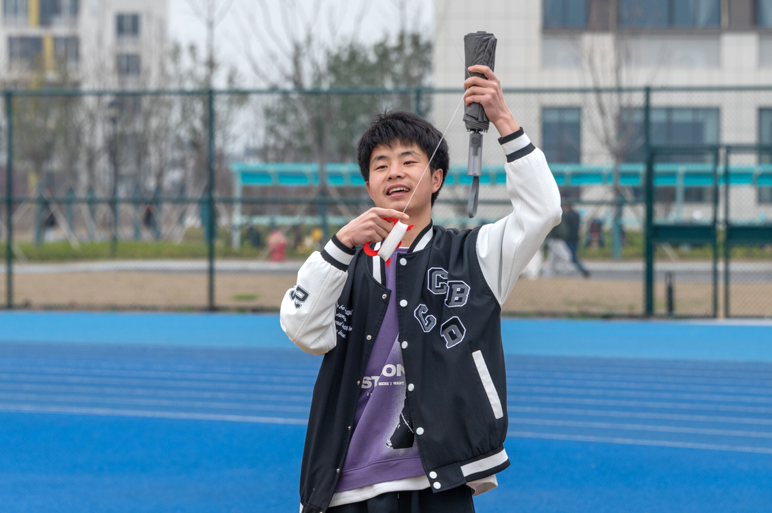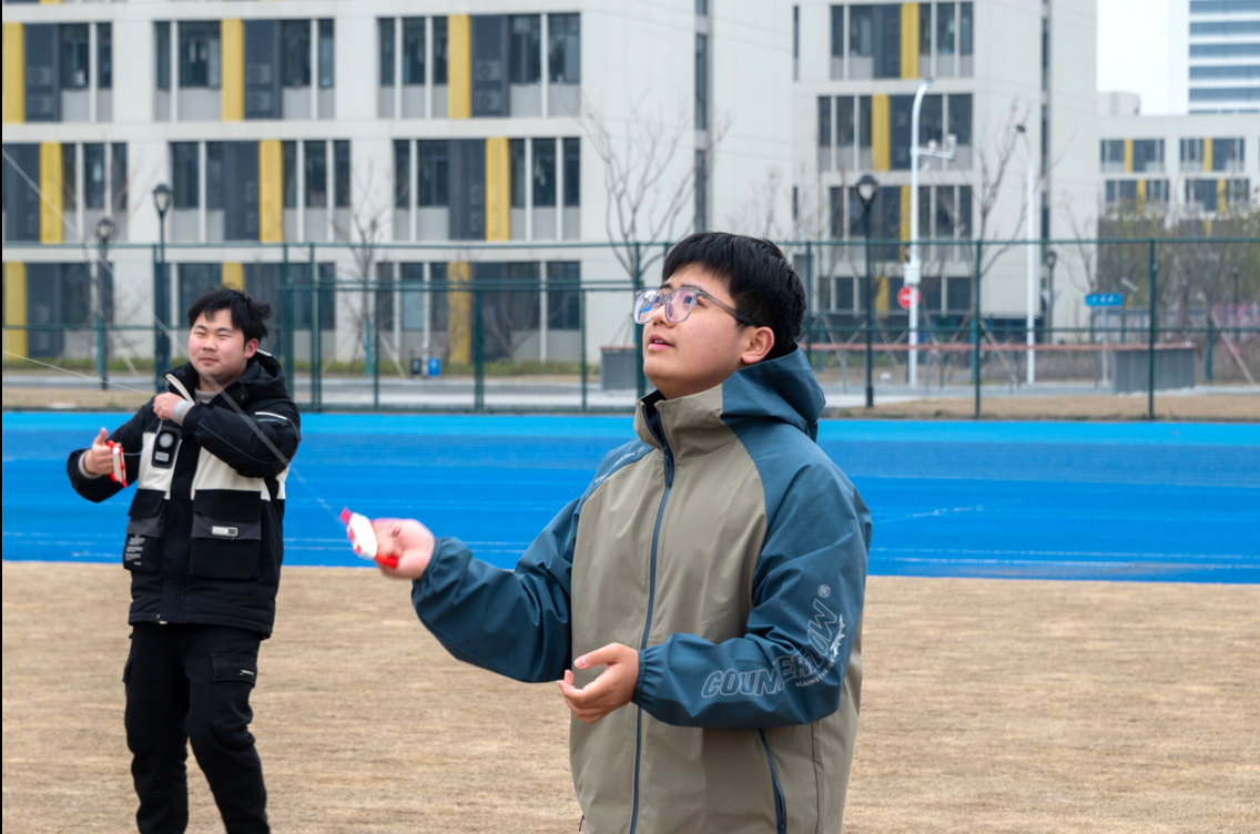 飞纸鸢,笑开颜。活动开始后,各班同学在洁白的天空下,同拉着风筝奋力奔跑,承载着心愿、目标与烦恼的风筝也随之升起。同学们有的顺风奔跑,有的驻足远望,还有的两人配合,齐心协力……现场洋溢着同学们的欢声笑语,气氛活跃。