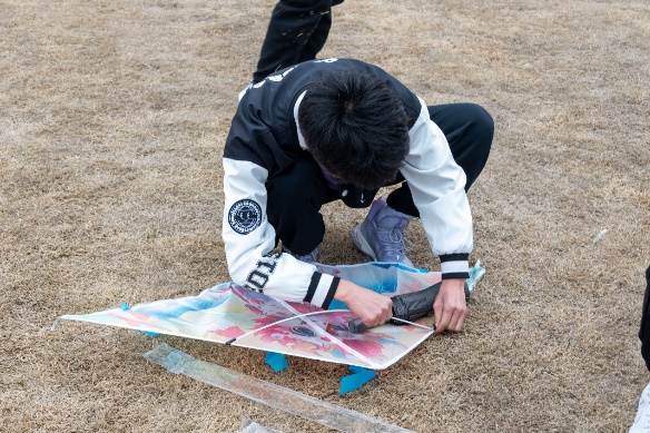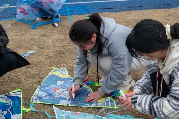 抒心声,展宏图。活动开始前,活动负责人对风筝的组装要求和安全规则进行了耐心的讲解。随后各班同学开始着手组装自己的风筝。组装完成后,同学们拿起一支支五颜六色的水笔,在风筝上写下了自己当前遇到的烦恼、在本学期制定的目标、未来发展的期许与心愿,以风筝为载体,承载美好的愿望,带走沉重的压力。