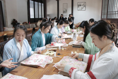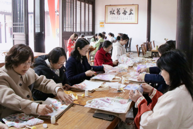 一路上阳光明媚,清风拂面,女教职工们沿着村子齐整的石砖铺路健步走,欣赏着路边漂亮素雅的房舍,巾帼风采与初春美景相互映衬,形成了一道靓丽的风景线。在不老书院,老师门体验了蝶骨巴特包制作,在主持人的讲解下,老师们纷纷开始挑选喜欢的花样,很快就开始进入DIY动手制作环节。大家都小心翼翼的制作着,刷胶、贴画、用海绵按压融合……每一步的操作,都细致认真,力求完美。经过老师们的巧妙搭配,一个个精美的包包展现在眼前。看着自己亲手制作的包,老师们非常有成就感,迫不及待地拍照、展示给彼此欣赏。融合了个人偏好和特色的蝶骨巴特包,是学院工会赠予大家的节日礼物,更是老师们给自己的生活馈赠。