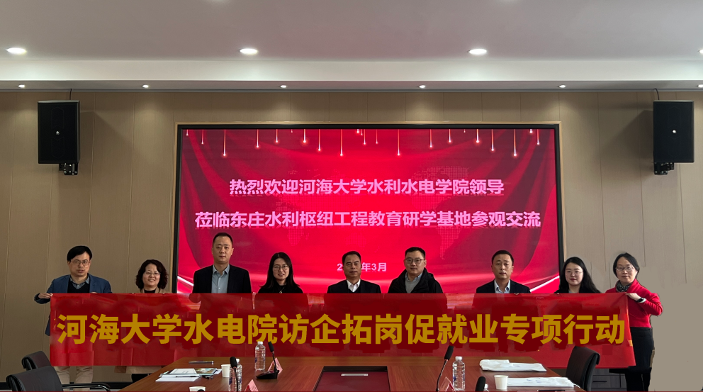 为贯彻落实教育部、省教育厅、学校党委关于“访企拓岗促就业”专项行动的要求,拓宽就业渠道,促进校企合作,提升就业质量。3月27日,水电院副院长俞晓东、党委副书记戴媛媛、水利水电工程系副主任黄显峰、李晓英、实习带队教师王润英、团委书记笪步源前往陕西东庄水利运营管理有限公司开展“访企拓岗”调研交流。陕西东庄水利运营管理有限公司总经理张小明、副总经理刘涛、崔哲出席本次活动,双方就产学研合作、水利专业人才培养、学生实习实践等方面进行深入细致的交流。