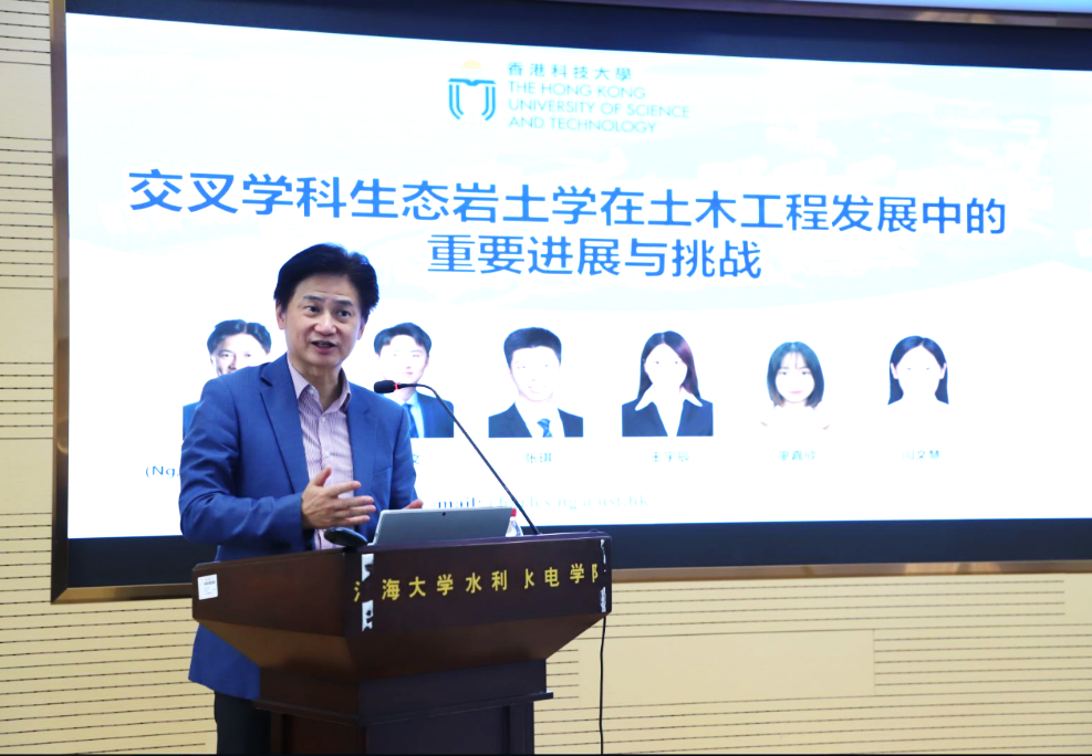 吴宏伟教授进行了“交叉学科生态岩土学在水利土木工程发展中的重要进展与挑战”的学术报告。吴宏伟教授现为香港科技大学土木及环境工程学系讲席教授、研究生院院长兼广州校区副校长,主要从事非饱和土力学、生态岩土学及土-结构作用领域的研究工作。报告中,他详细介绍了交叉学科的主要理论基础:植被非饱和土本构关系、大气-植被-非饱和土水分运输机理与物质循环规律,并介绍了生态岩土学在工程领域的部分应用成果,探讨了生态岩土学进一步发展有待解决的科学问题。