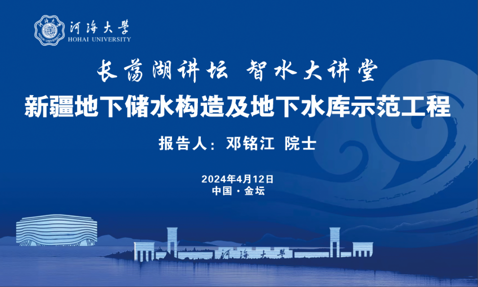 4月12日,中国工程院院士、新疆维吾尔自治区科协主席、自治区政协农业与农村委员会副主任、新疆农业大学名誉校长邓铭江做客“智水大讲堂”,以《新疆地下储水构造及地下水库示范工程》为题,为开云电竞网常州校区400余名师生做专题报告。报告会由学校党委书记唐洪武院士主持。