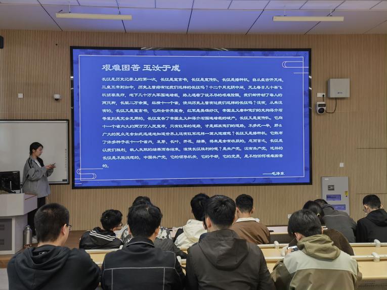 回忆盛世往昔,峥嵘岁月长。水工三班团支书冯佳对同学们开展长征精神党课。她在党课中强调了“长征精神”形成的历史渊源、长征精神的内涵为:是救国救民的崇高信念,也是不怕苦、不怕死的牺牲精神,更是团结一致、互助友爱的奉献精神。长征精神作为一种精神力量,能够在人们认识世界、改造世界的过程中转化为物质力量,对社会发展产生深刻的影响。从过去到现在,长征精神因其生命力而熠熠生辉;是开天辟地、敢为人先的创精神;坚定理想、百折不挠的奋斗精神;立党为公、忠诚为民的奉献精神。