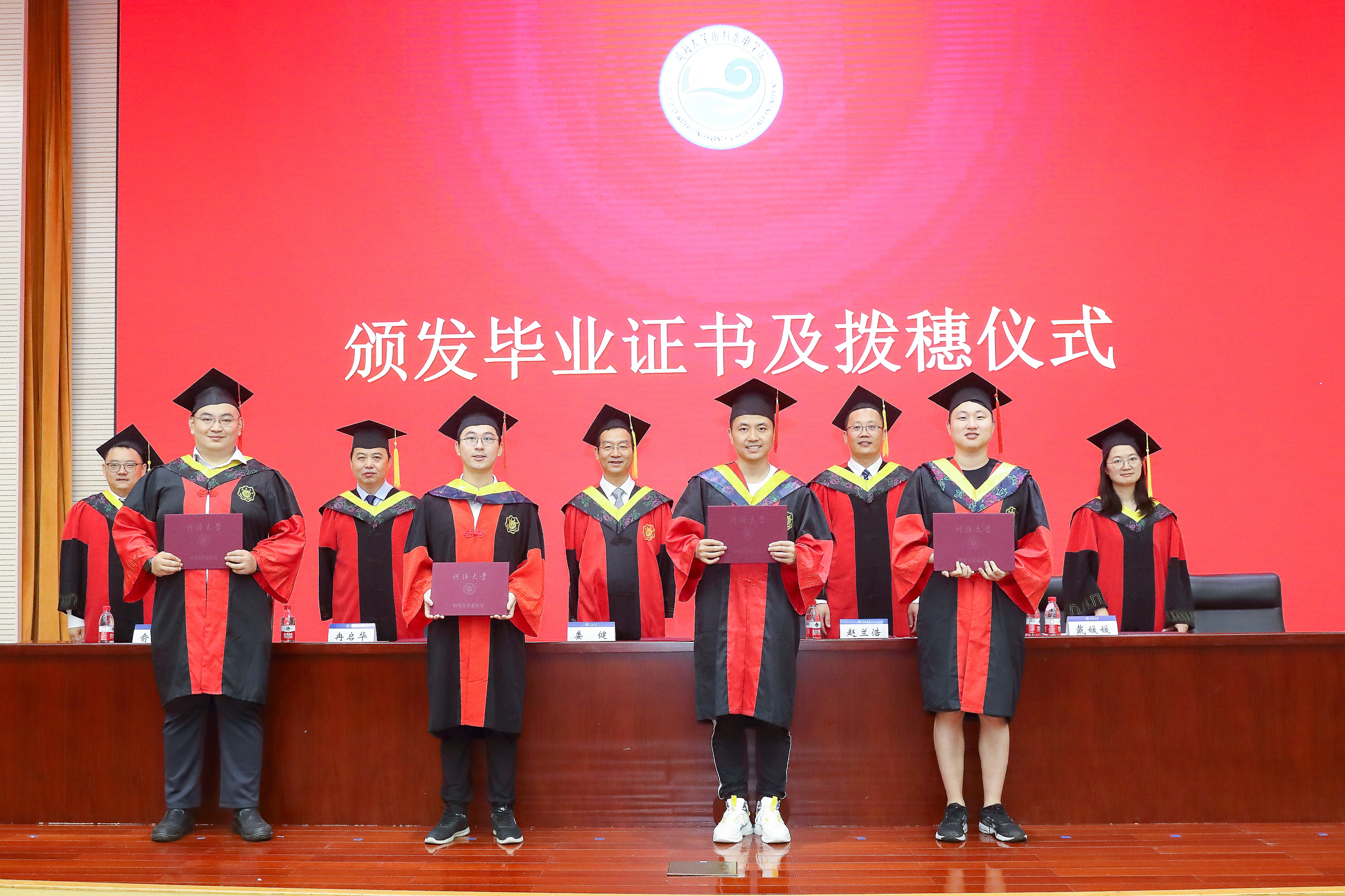 学院领导为全体毕业生颁发毕业证书,扶正流苏,合影留念。