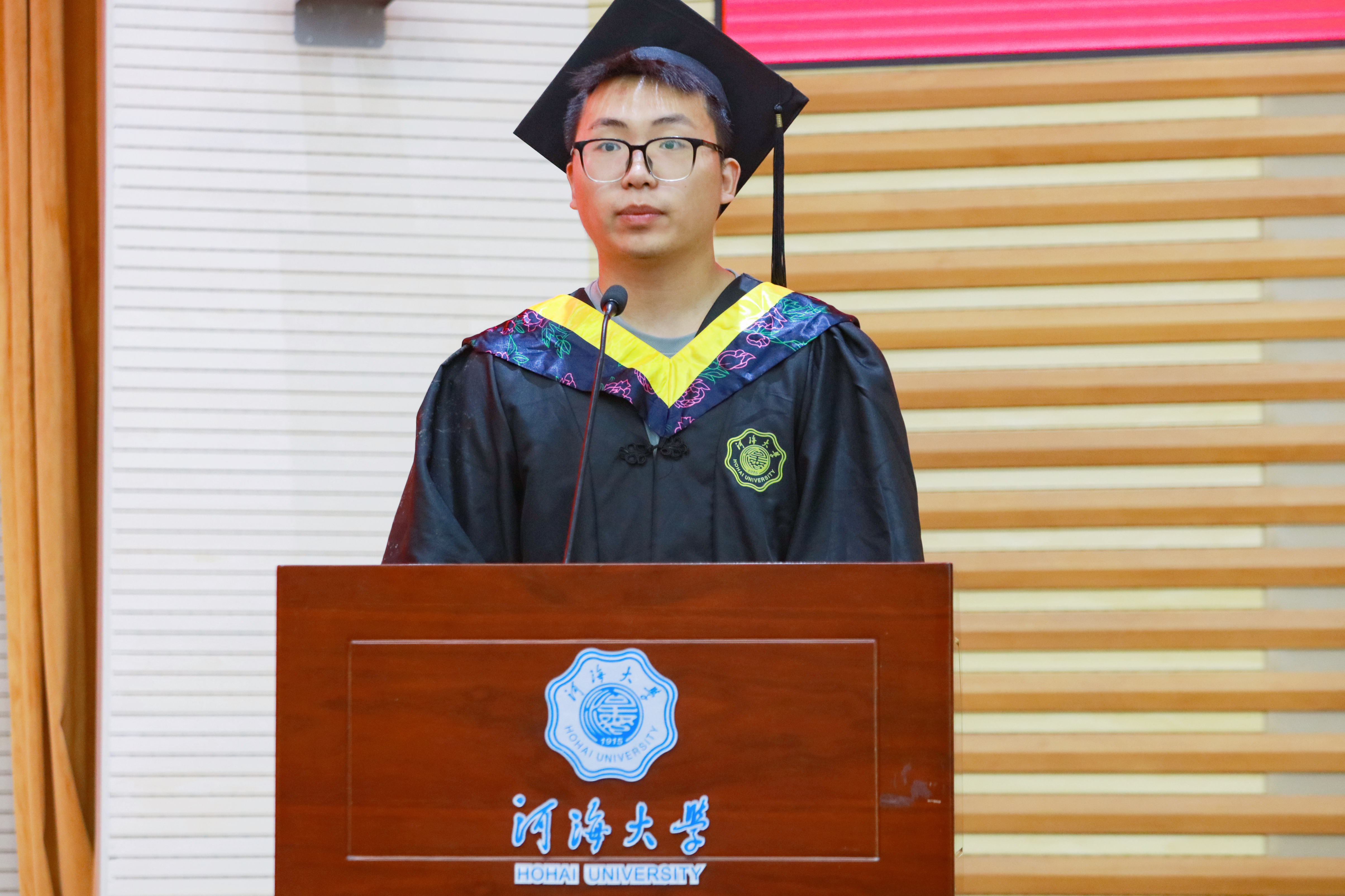 研究生毕业生代表王慧、本科毕业生代表侯永驰发言,表达了对学院的惜别之情和对老师们的感激之心,表示在人生新征程上将始终秉承河海精神,行健不息。