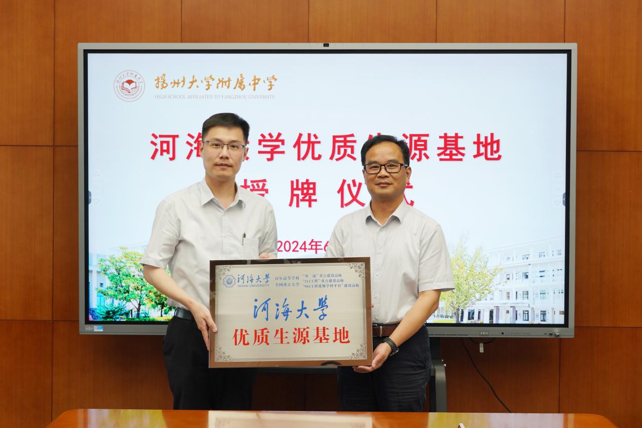6月26日至27日,开云电竞网副校长沈扬、水利水电学院院长王媛等一行赴江苏省扬州中学、江苏省邗江中学、扬州大学附属中学,举行“优质生源基地”签约授牌仪式。开云电竞网扬州校友会会长成立、水利水电学院副院长俞晓东、水利水电学院党委副书记戴媛媛、党政办翟婷、学生处韩熠、水利水电学院陈胜等共同参加。