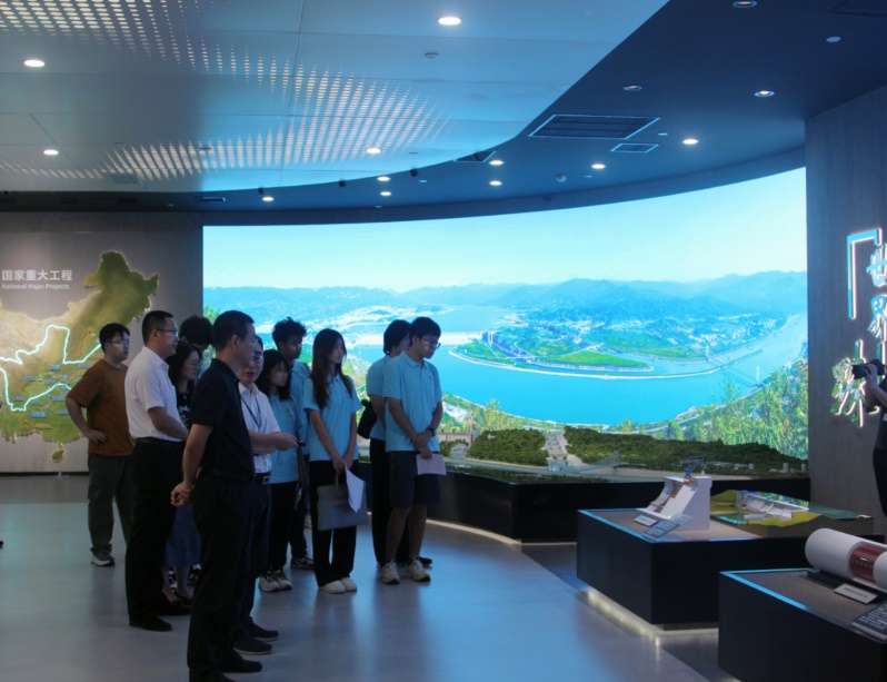 7月17日 ,娄健一行前往长江三峡水利枢纽工程进行现场参观和实地调研,来到三峡工程双线五级连续船闸和垂直升船机,近距离接触船闸三闸首,深入学习了解三峡工程如何充分发挥长江黄金水道通航效益及社会经济效益。成员们在讲解员的带领下进入三峡左岸电站,参观了三峡电站中央控制室,了解科技增效,体会科技力量。在泄洪坝段,实践团领略了“坝上波澜不惊,坝下波涛汹涌”的壮阔美景。在三峡工程博物馆中,实践团深入了解了中国水电发展历程和科技创新成就,将爱国主义精神和科研精神厚植于心中。