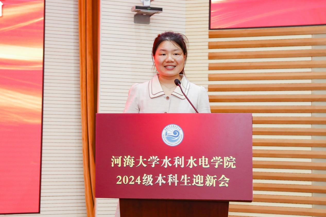 王媛院长对334名新生表示衷心祝贺和热烈欢迎。她从学院办学历史、人才培养、专业特色、系所设置和师资力量等方面介绍了学院雄厚的办学实力、丰硕的云开电竞app下载地址和杰出的校友代表。王媛院长对2024级新生们提出三点期许:一是心有大我,怀抱至诚报国的理想信念。二是勤学笃行,坚持求是创新的躬耕态度。三是学以明志,传承卓越精进的弘道追求。她勉励同学们牢记水电人的追求与使命,以"艰苦朴素"为基,以"实事求是"为尺,以"严格要求"为镜,以"勇于探索"为帆,书写属于这一代水电人的辉煌篇章!