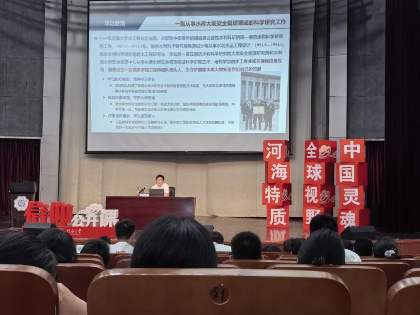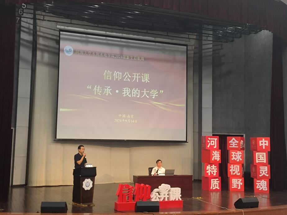 9月14日,我院举办2024级“传承·我的大学”信仰公开课活动,活动由学院党委书记娄健主持,院党委副书记戴媛媛、2024级辅导员笪步源及全体2024级新生参加,由我院1987届水利水电工程建筑专业杰出校友、水利部大坝安全管理中心总工程师、南京水利科学研究院大坝安全与管理研究所所长盛金保教授主讲。