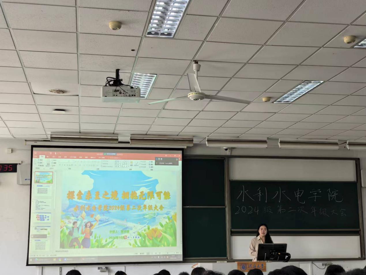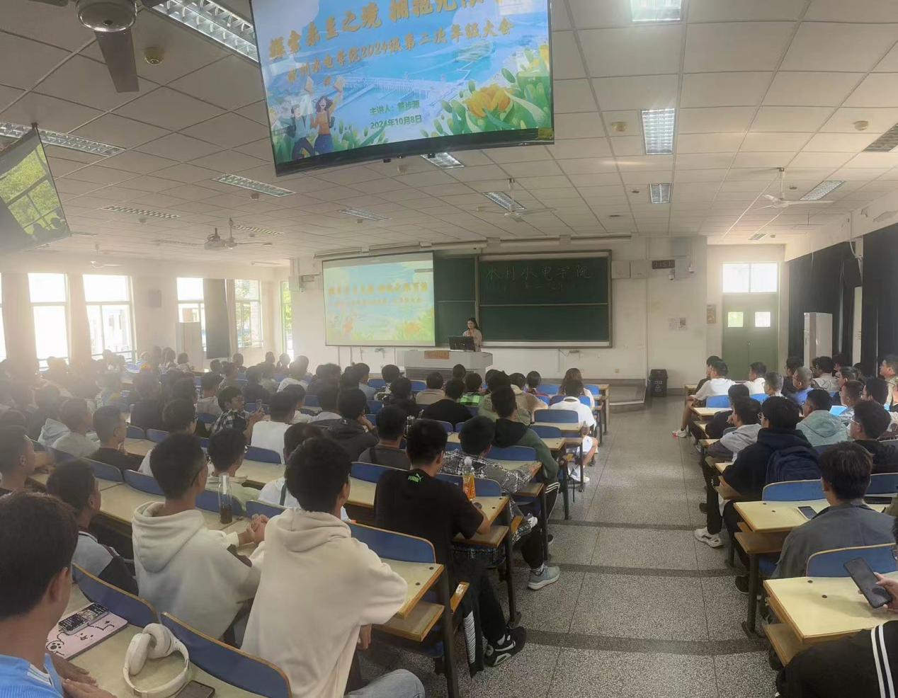 2024年10月8日,为帮助大一新生迎接全新挑战 ,我院2024级举办“探索未至之境,拥抱无限可能”年级大会,24级全体本科生参加,会议由辅导员笪步源主持。