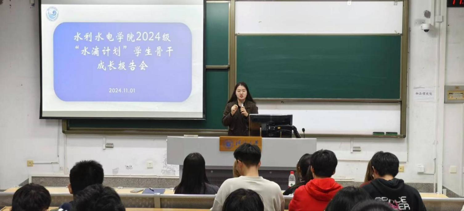 11月1日,我院开展2024级“水滴计划”学生骨干成长报告会,旨在对近期学生工作进行总结、提升与思考,强化2024级学生骨干自我服务、自我管理、自我教育的综合成长,2024级全体年级委、班长、团支书参加,报告会由院团委书记、2024级辅导员笪步源主持。