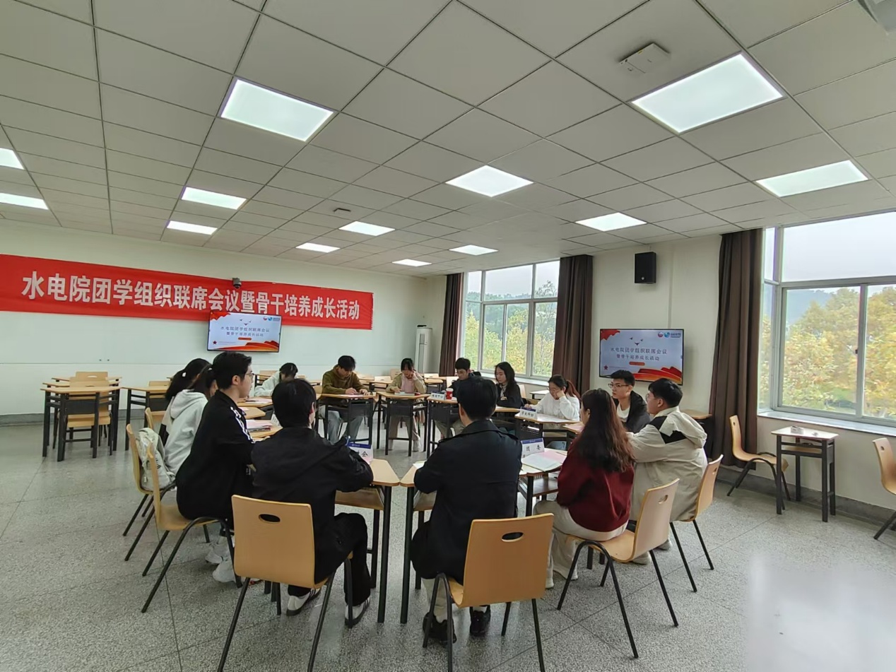 为进一步提高我院团学组织凝聚力,加强各组织主席团的协作交流,提升主席团成员的工作能力与交流沟通能力,2024年11月13日,我院举办“水电优才-先锋骨干领潮计划”团学组织联席会议暨骨干培养成长活动。院团委、研究生会、学生会、青年志愿者协会、学生科协、传媒中心全体主席团成员参加,会议由院团委书记笪步源主持。