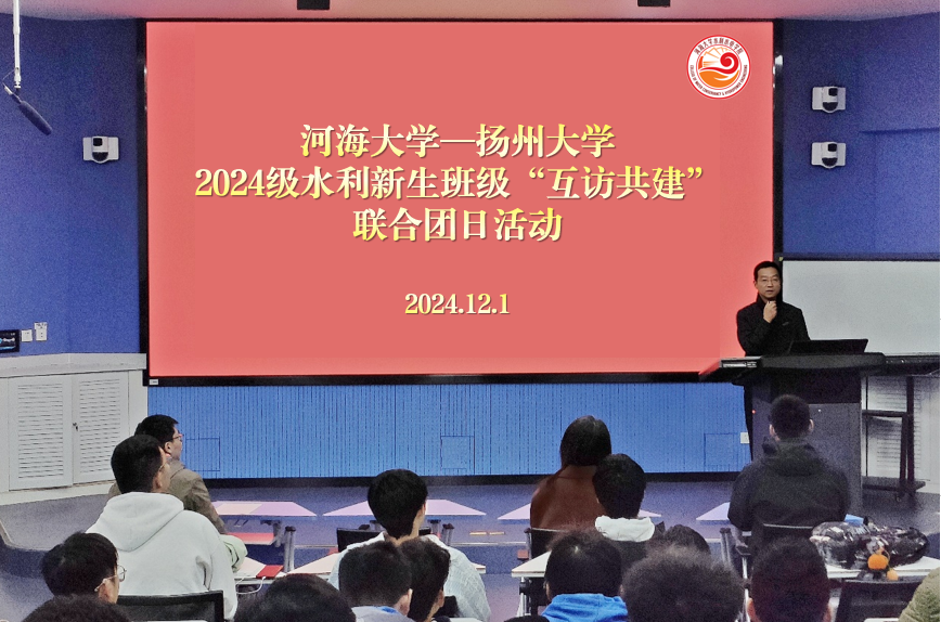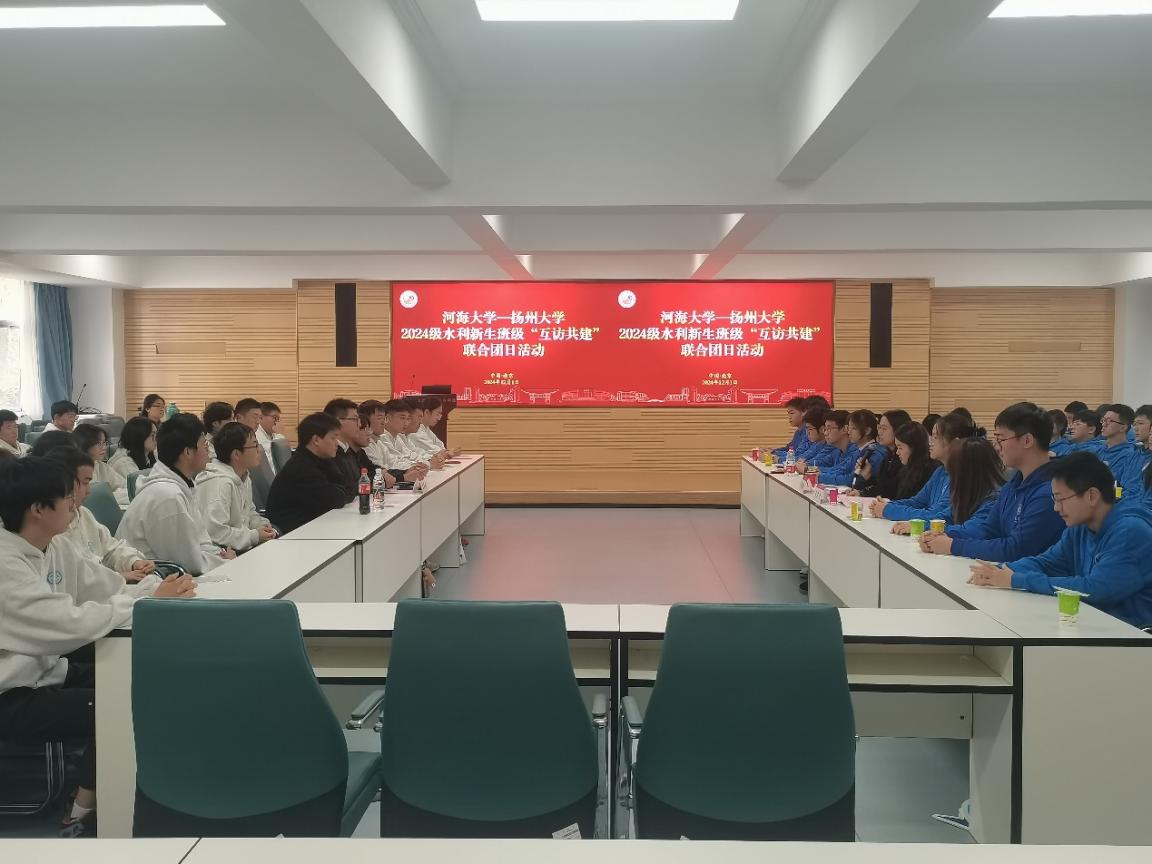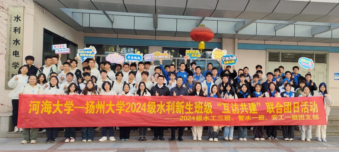 2024年12月1日,我院2024级新生班级与扬州大学水利科学与工程学院开展水利新生联学联建主题活动。我院党委书记娄健、党委副书记戴媛媛出席活动并致辞,扬州大学水利科学与工程学院青年教师、水工2403班班主任苏昆鹏,我院团委书记兼2024级辅导员笪步源、2024级水利水电工程3班、智慧水利1班、安全工程1班、年级学生骨干代表参加。双方围绕党团共建、主题团日、专业实践等内容,以座谈交流、经验分享、实地参观等形式开展系列活动。