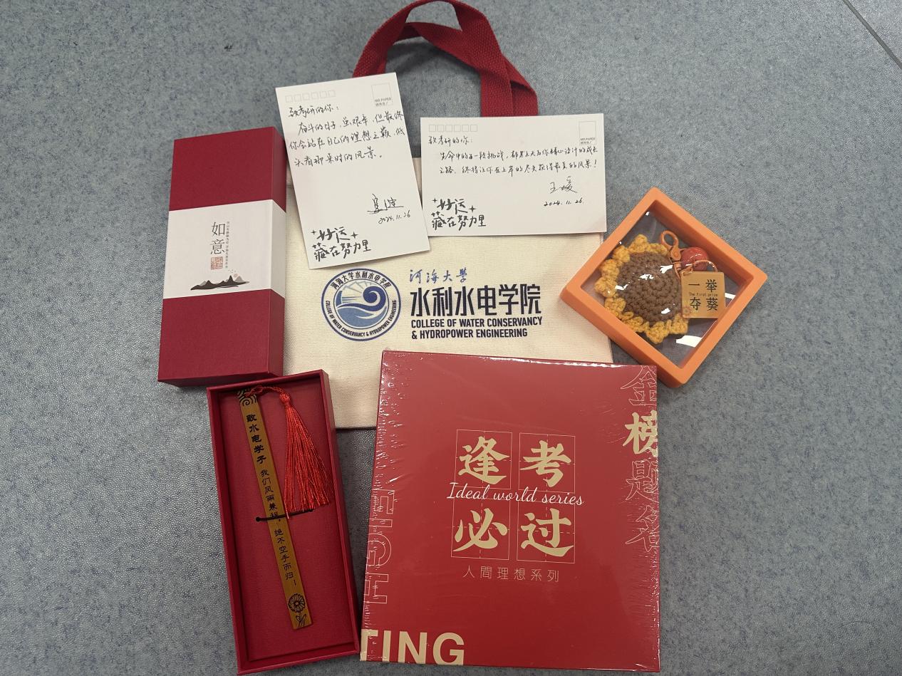 学院贴心为考研学子精心准备一系列充满寓意的考研礼物,包括“好事发生”手写祝福贺卡、“金榜题名”文具礼盒、“一举夺魁”钥匙扣、“披荆斩棘”竹制书签,以及印有学院院徽特色的手提帆布袋。每一份礼物都承载着对考研学子的关怀与祝福,寓意深远,旨在激励他们在考研之路上勇敢前行,最终取得优异的成绩。
