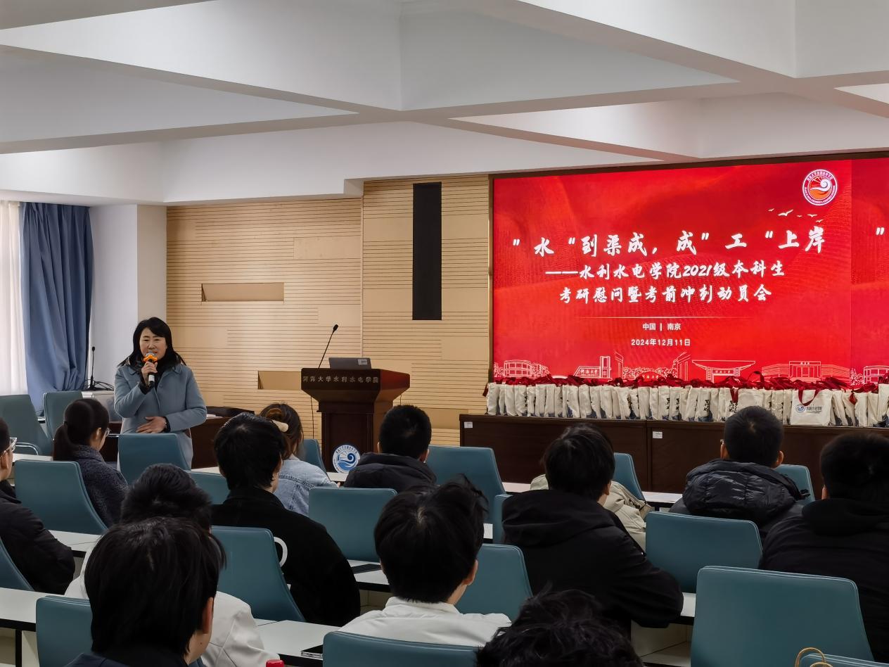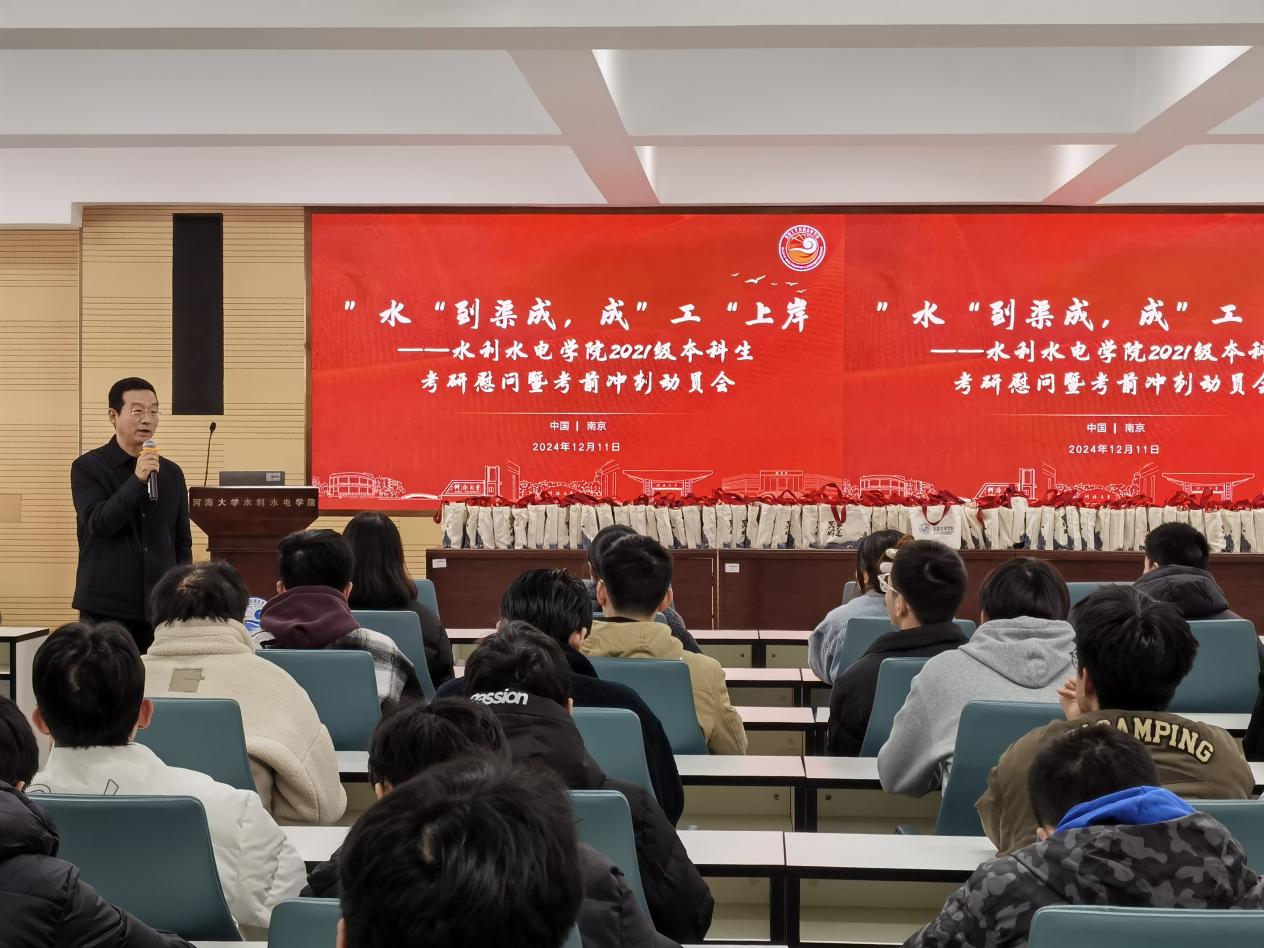 2025年全国研究生考试来临之际,为帮助水电学子进一步坚定考研信心,增强迎考决心1211院在水电馆301开展到渠成,成上岸”考研慰问暨考前冲刺动员。学院娄健书记、王媛院长、戴媛媛副书记、辅导员侯开智出席活动,2021级本科生参加活动