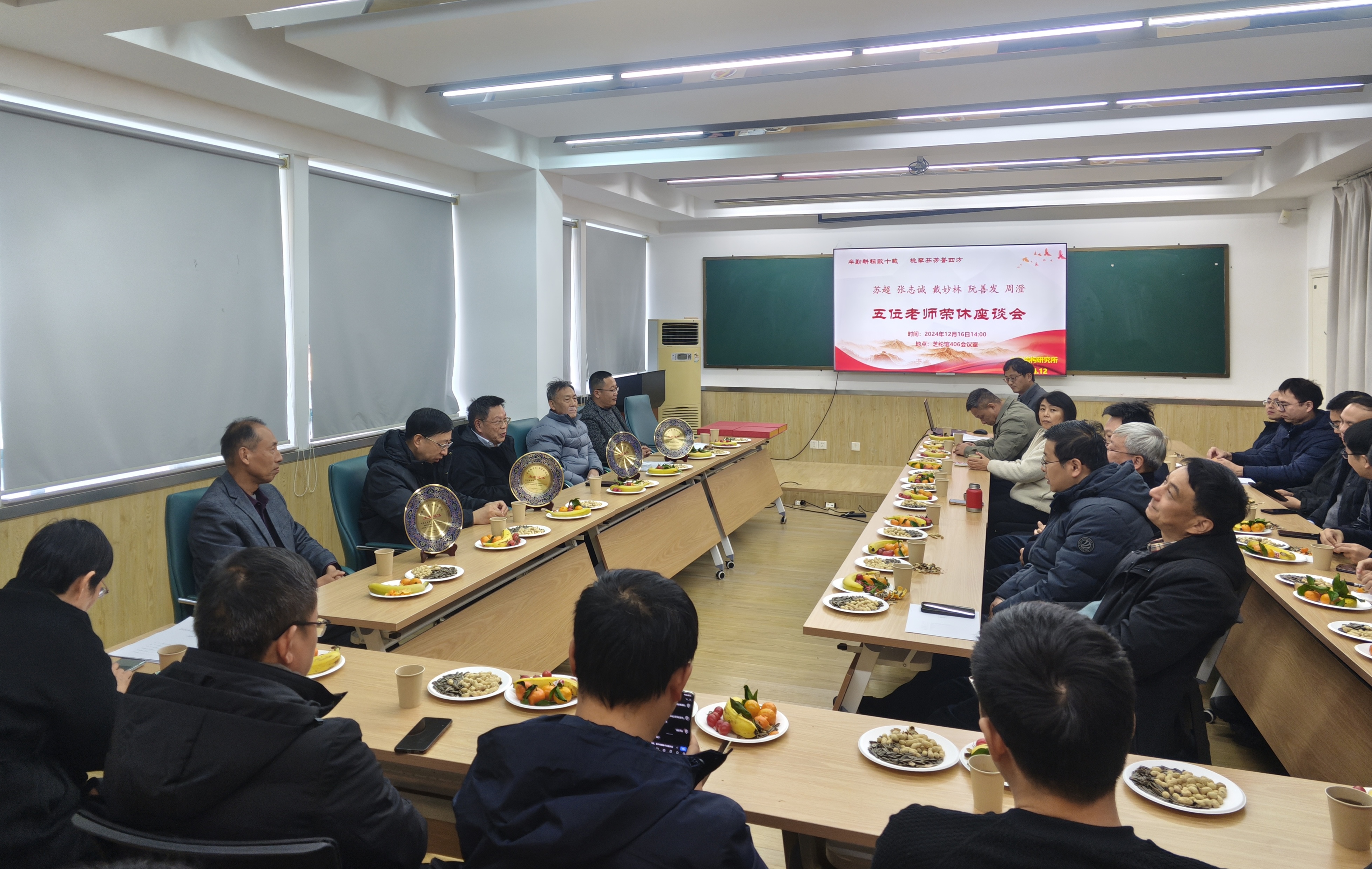 2024年12月16日,开云电竞网水利水电学院水工结构研究所精心筹备了一场以“辛勤耕耘数十载,桃李芬芳誉四方”为主题的荣休座谈会,深情致敬苏超、张志诚、戴妙林、阮善发、周澄五位为教育事业、水利事业奉献数十年的骨干教师。水工结构研究所全体教师参加了座谈会,对五位教师数十载辛勤工作表达了由衷的敬意和感谢,共同见证了这一温馨而庄重的时刻。座谈会由水工结构研究所所长岑威钧主持。