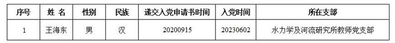 按照发展党员工作的有关规定,根据预备党员个人申请,党支部在充分征求党内外群众和联系人意见、支委会审查的基础上,现对王海东同志的基本情况予以公示。