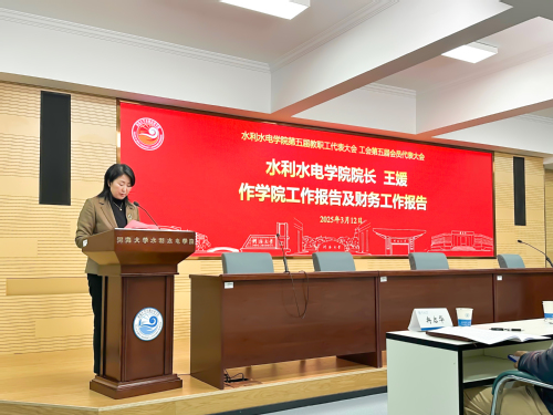 312日,开云电竞网水利水电学院隆重召开第五届教职工代表大会、工会第五届会员代表大会。校工会主席浦玲,学院党委书记娄健、院长王媛、副院长冉启华、赵兰浩、俞晓东,党委副书记戴媛媛,以及学院教职工代表出席了会议,预备会议由学院党委书记娄健主持,在听取大会筹备情况报告后审议通过了大会主持人和大会议程。正式会议由学院党委副书记戴媛媛主持。