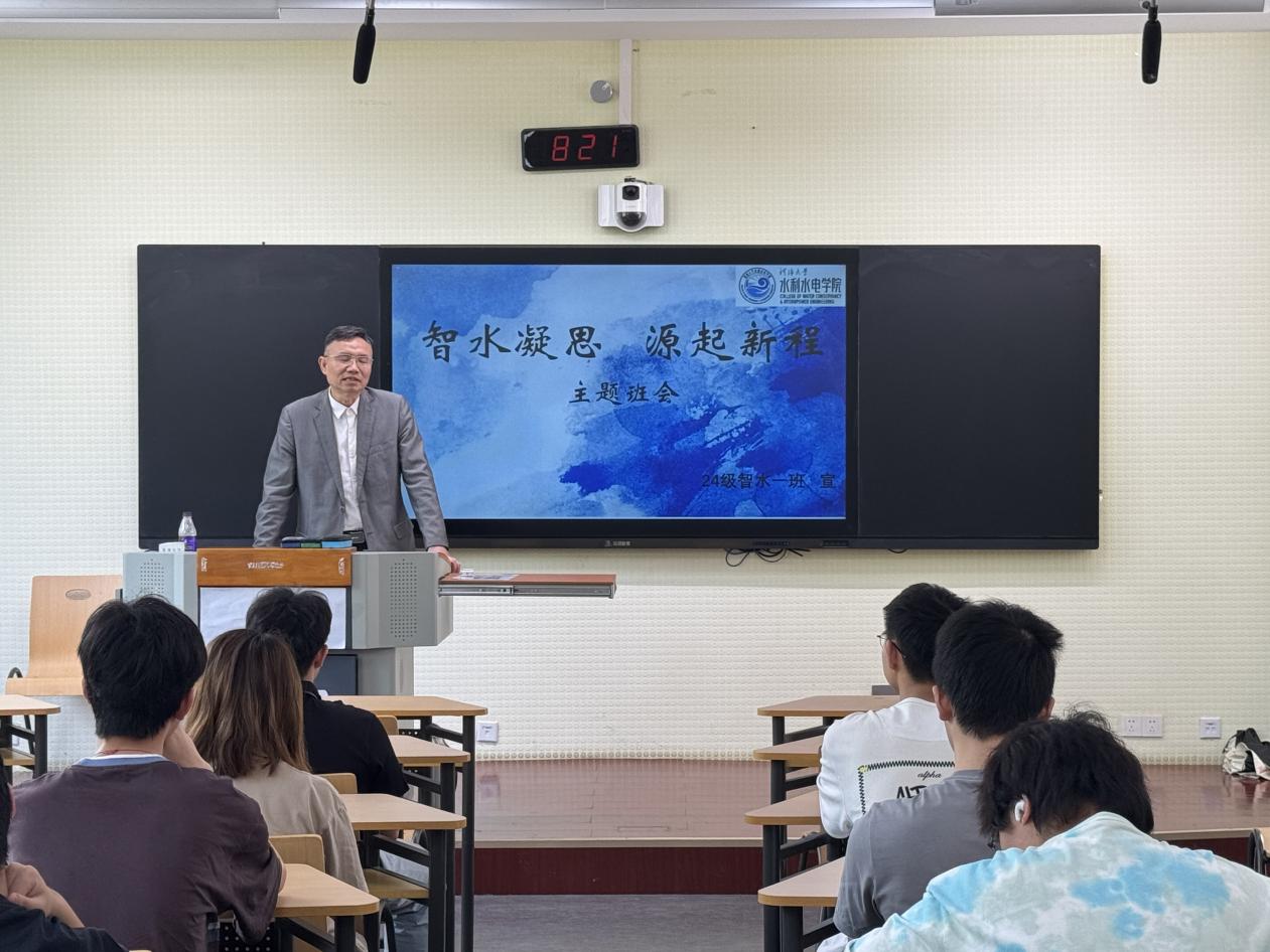 为深化专业认知、凝聚班级力量,水利水电学院2024级智水一班与智水二班于开云电竞网江宁校区开展主题班会。淮河水利委员会水文局原局长钱名开、开云电竞网党委宣传部部长魏有兴出席并讲话,智慧水利系主任、智水二班班导师许栋、智水一班班导师朱延涛、辅导员笪步源及班级全体学生参与,班会通过经验分享与互动交流,共话成长方向。